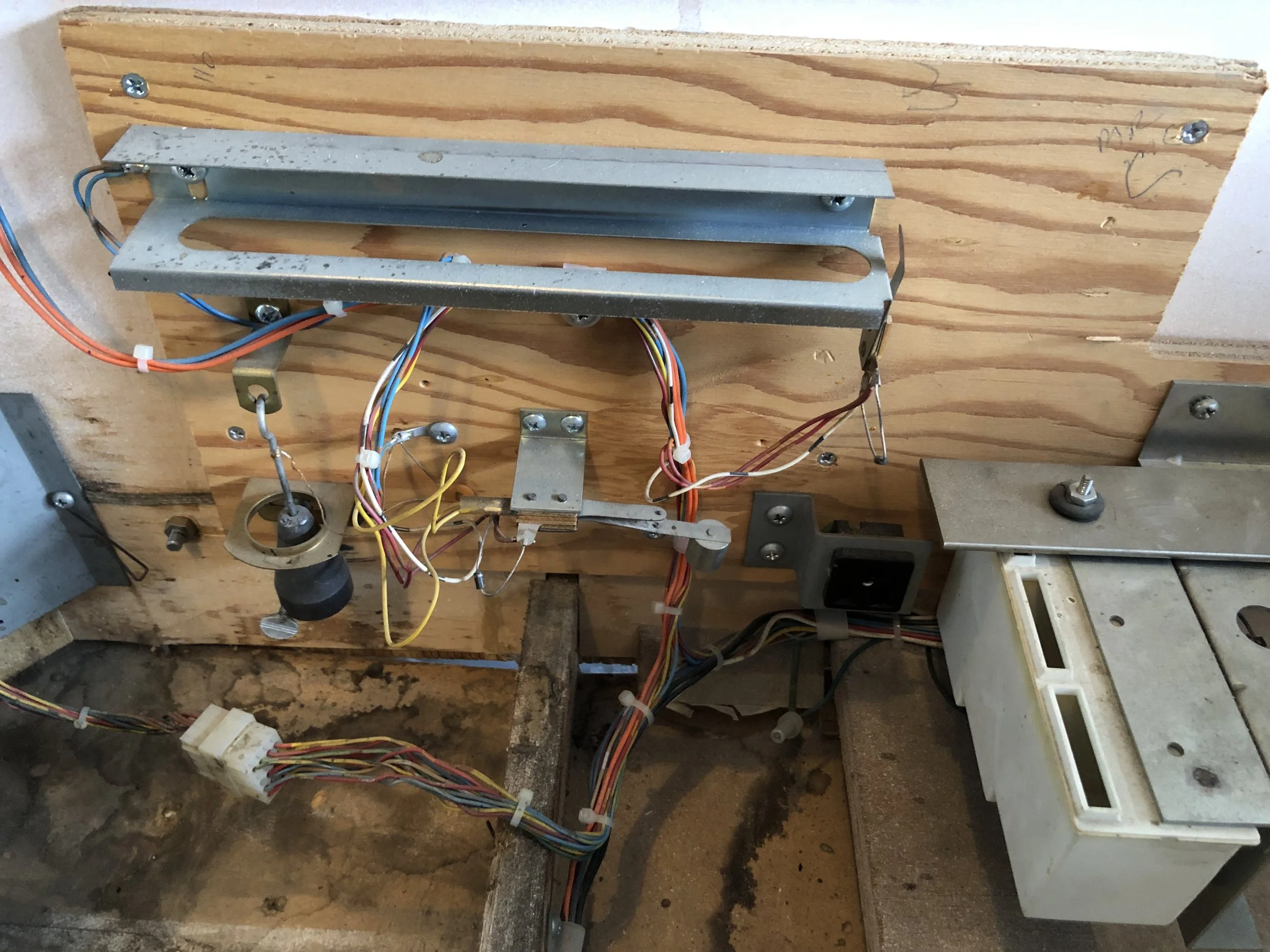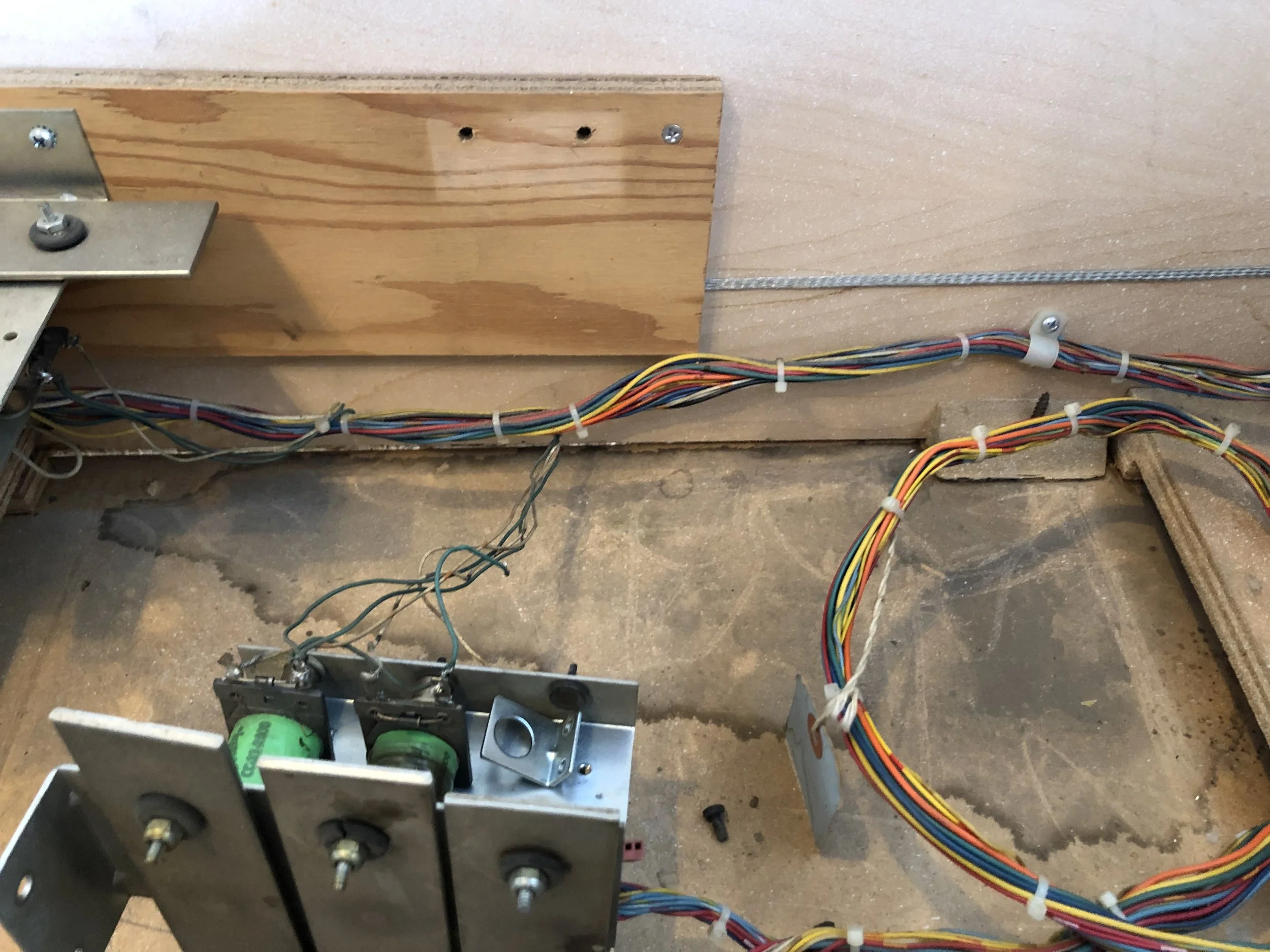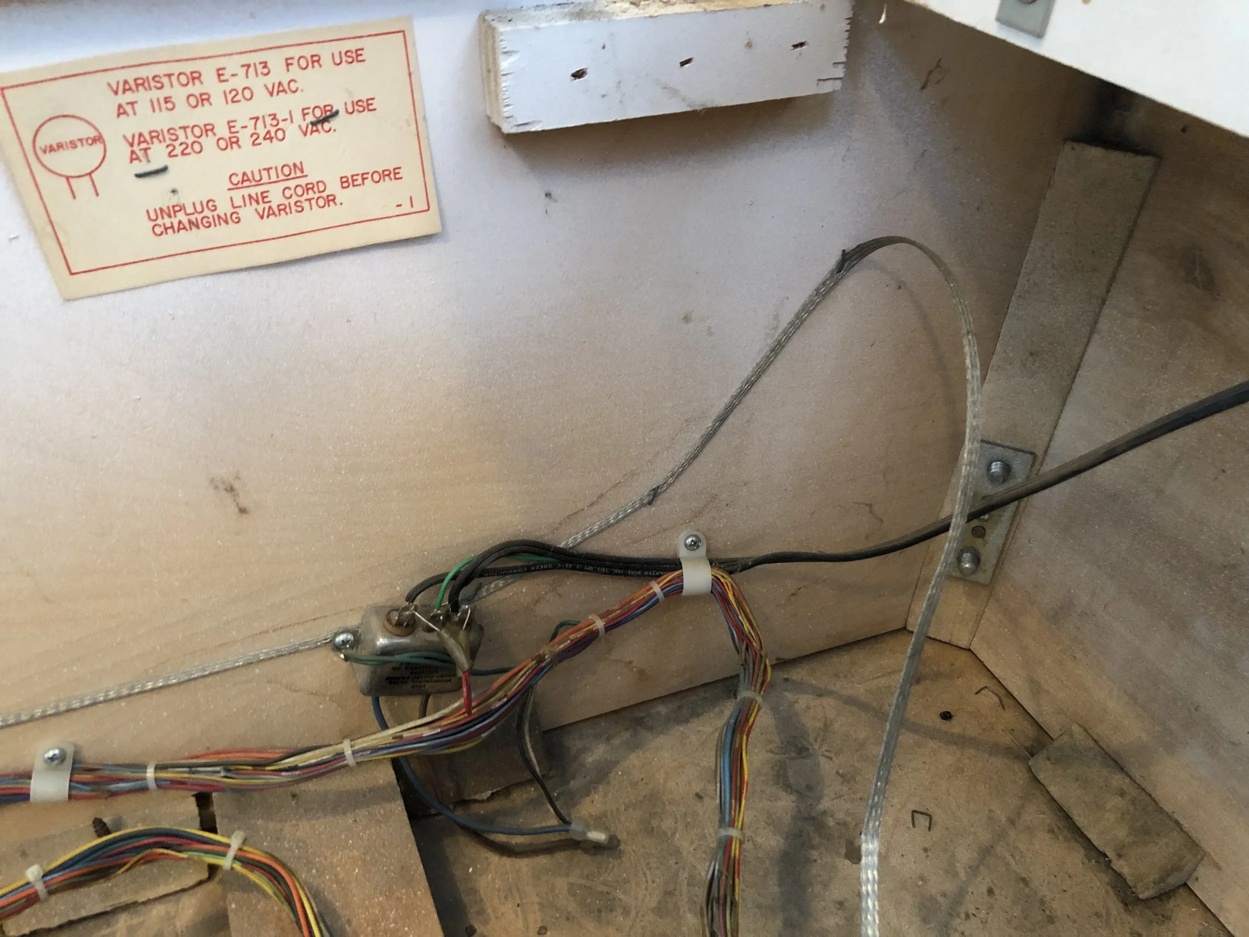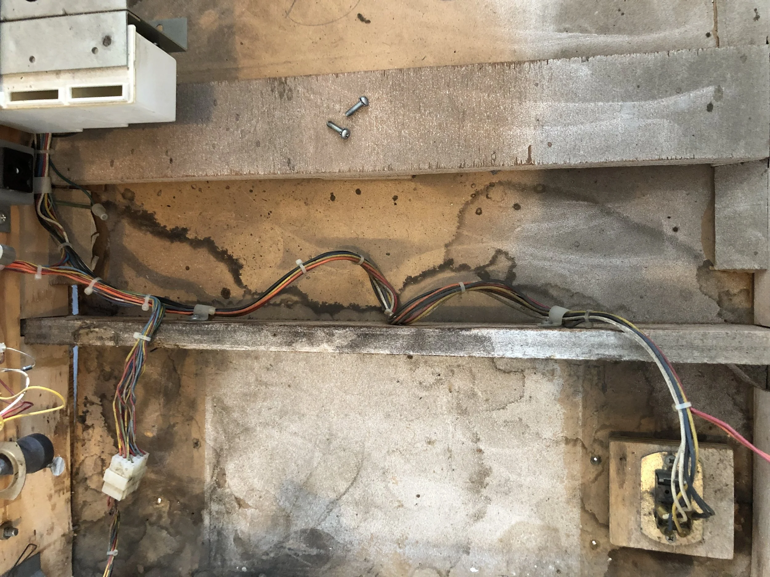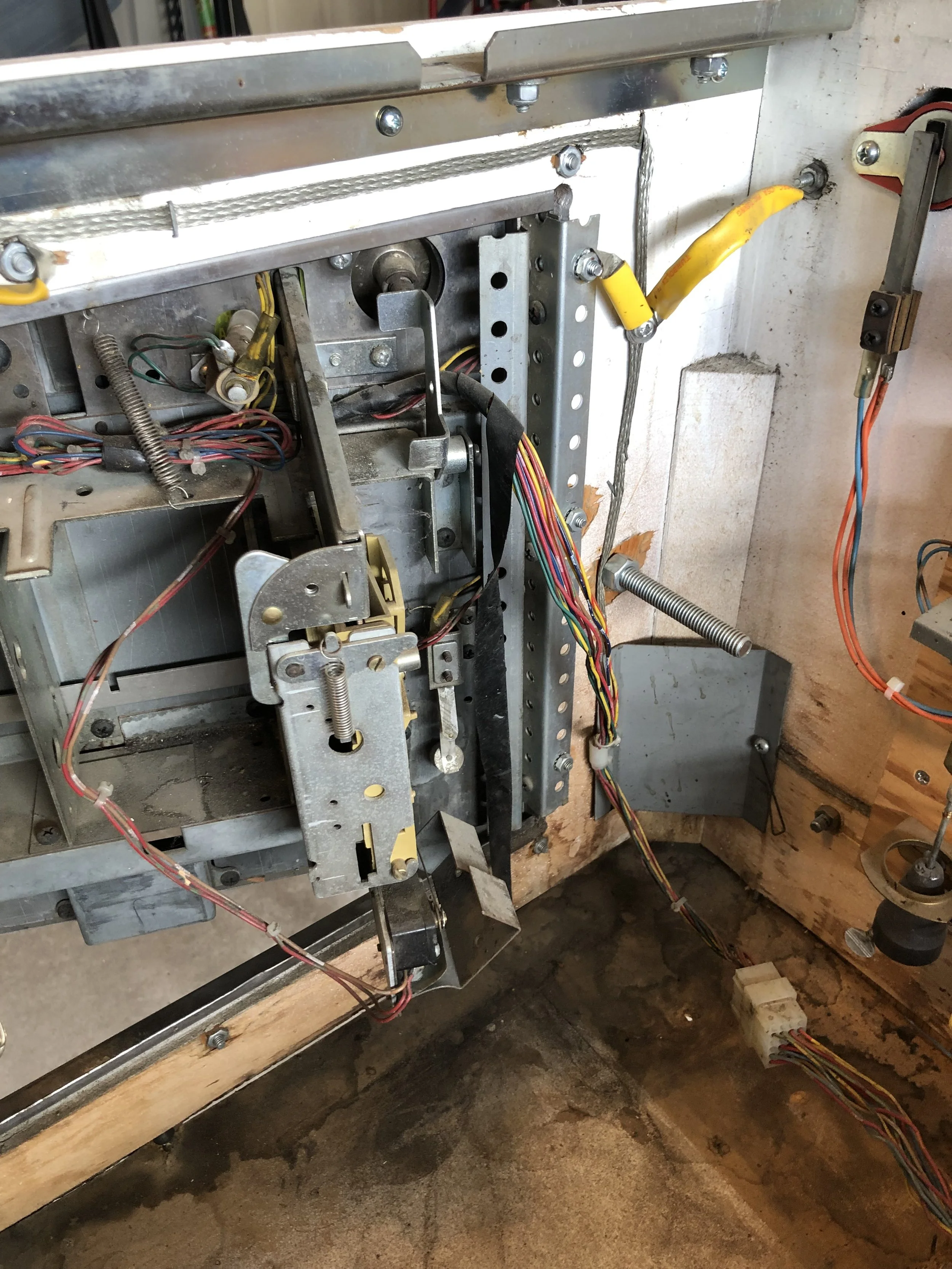 I was pleasantly surprised to find a complete board set, albeit a Stern SDB. There was moderate playfield wear, a live spider’s nest on the SDB, dormant mud dauber nests in the backbox and the lower cab, and don’t get me started on the condition of the cab.