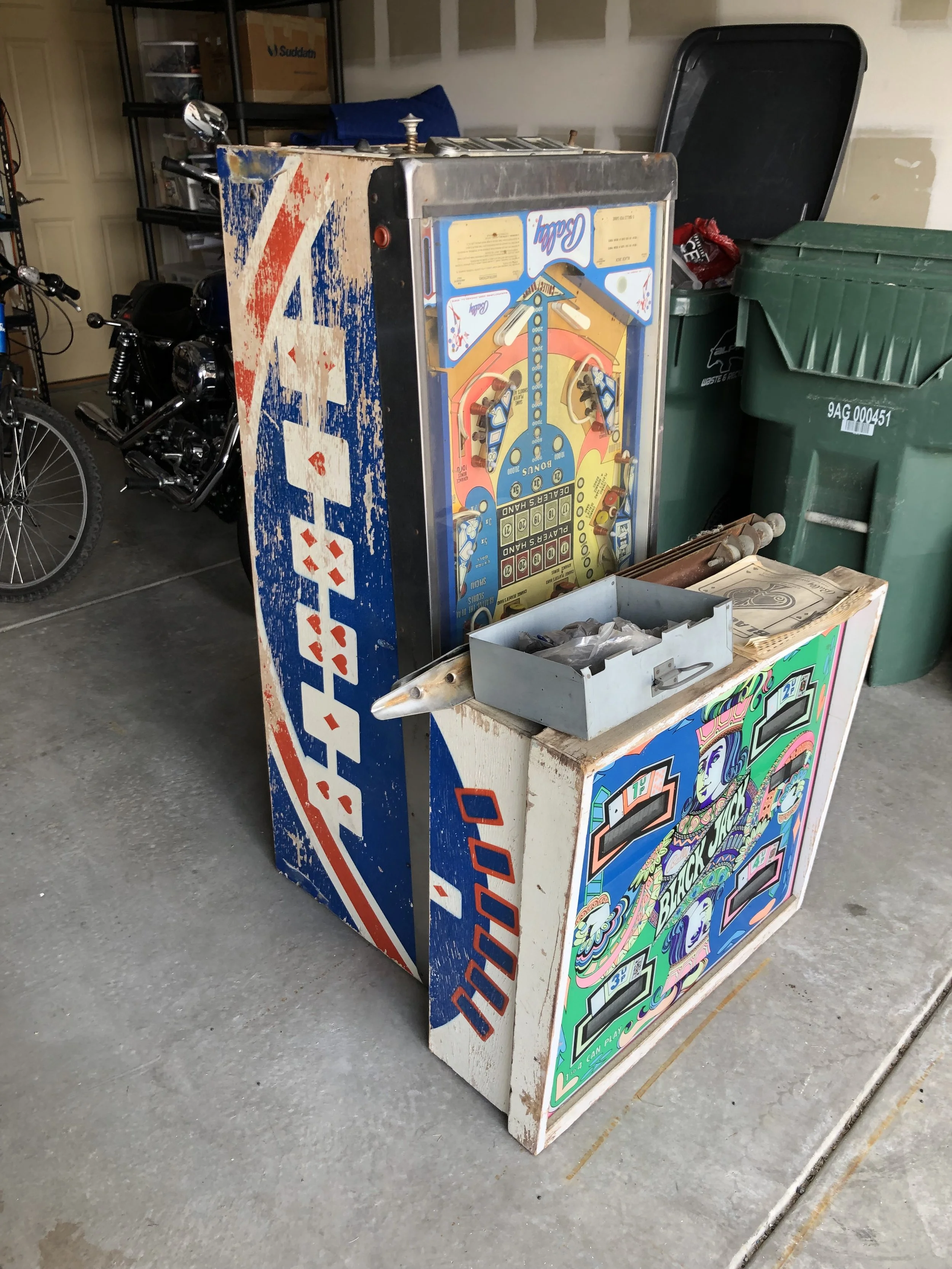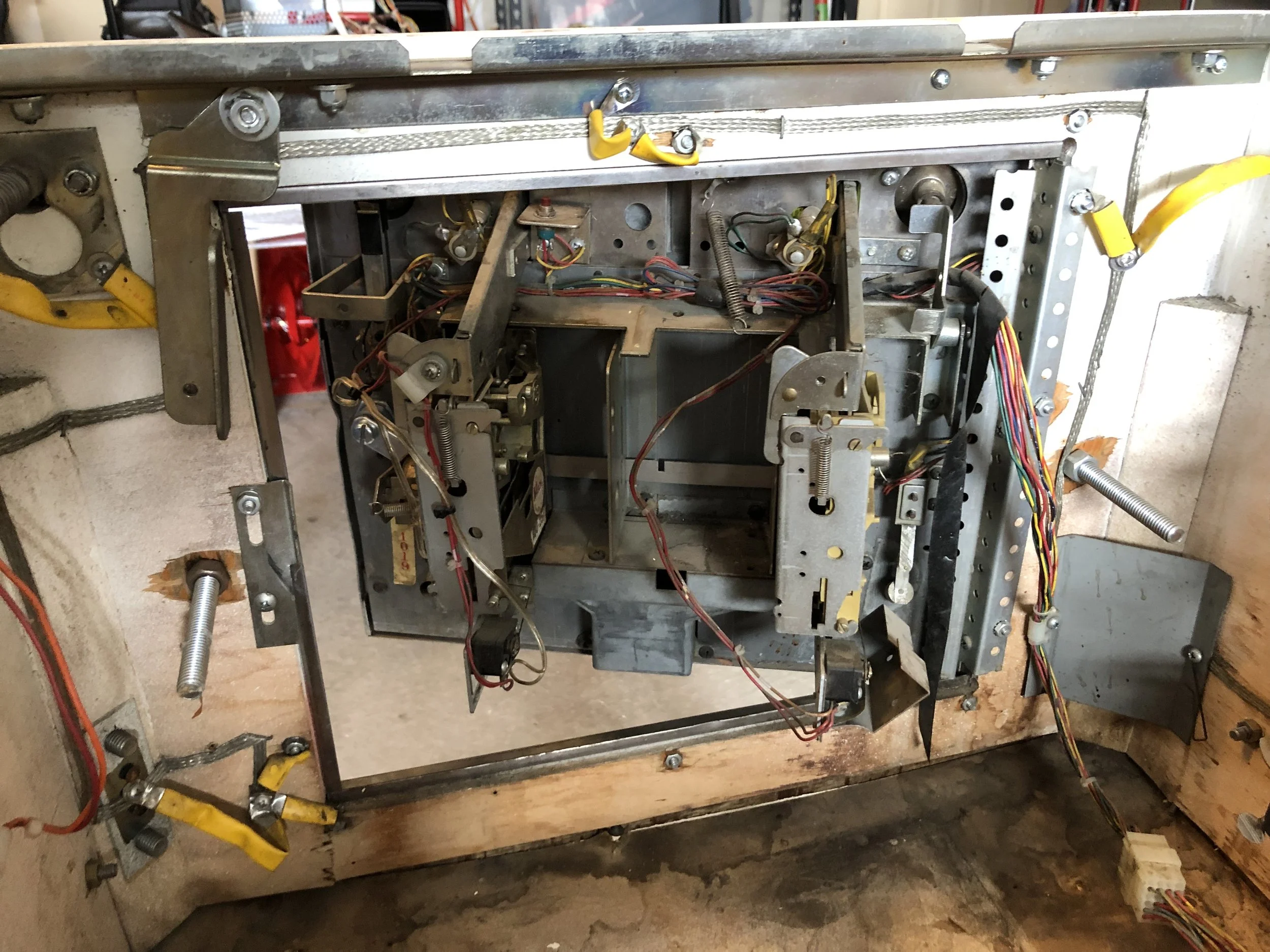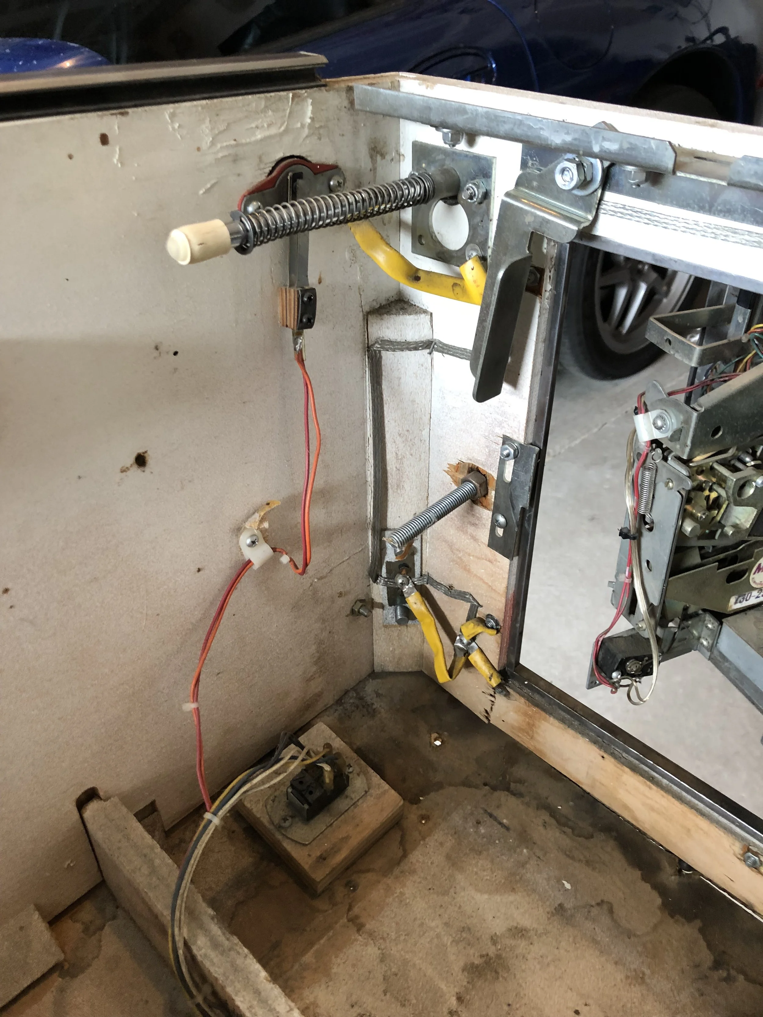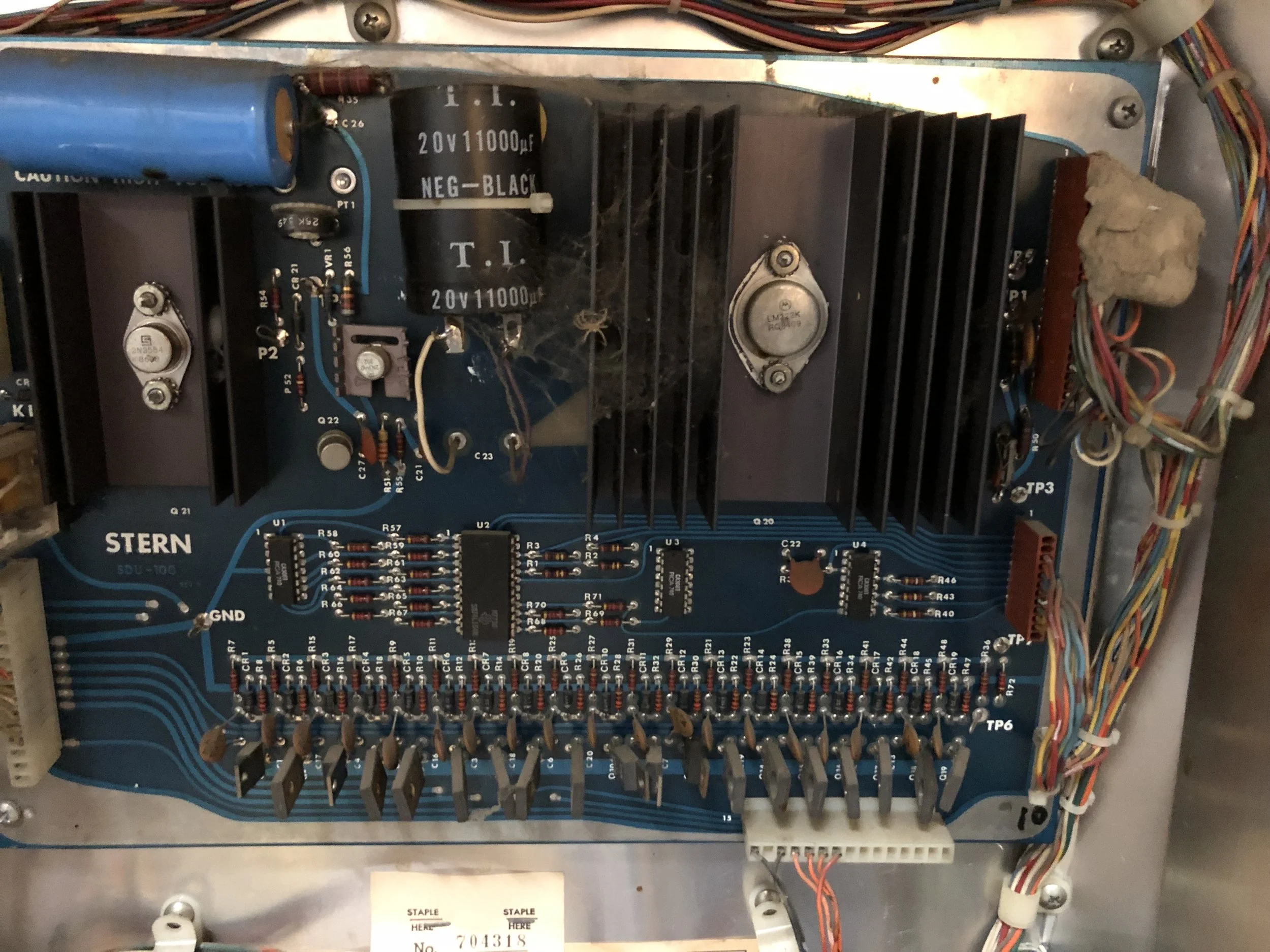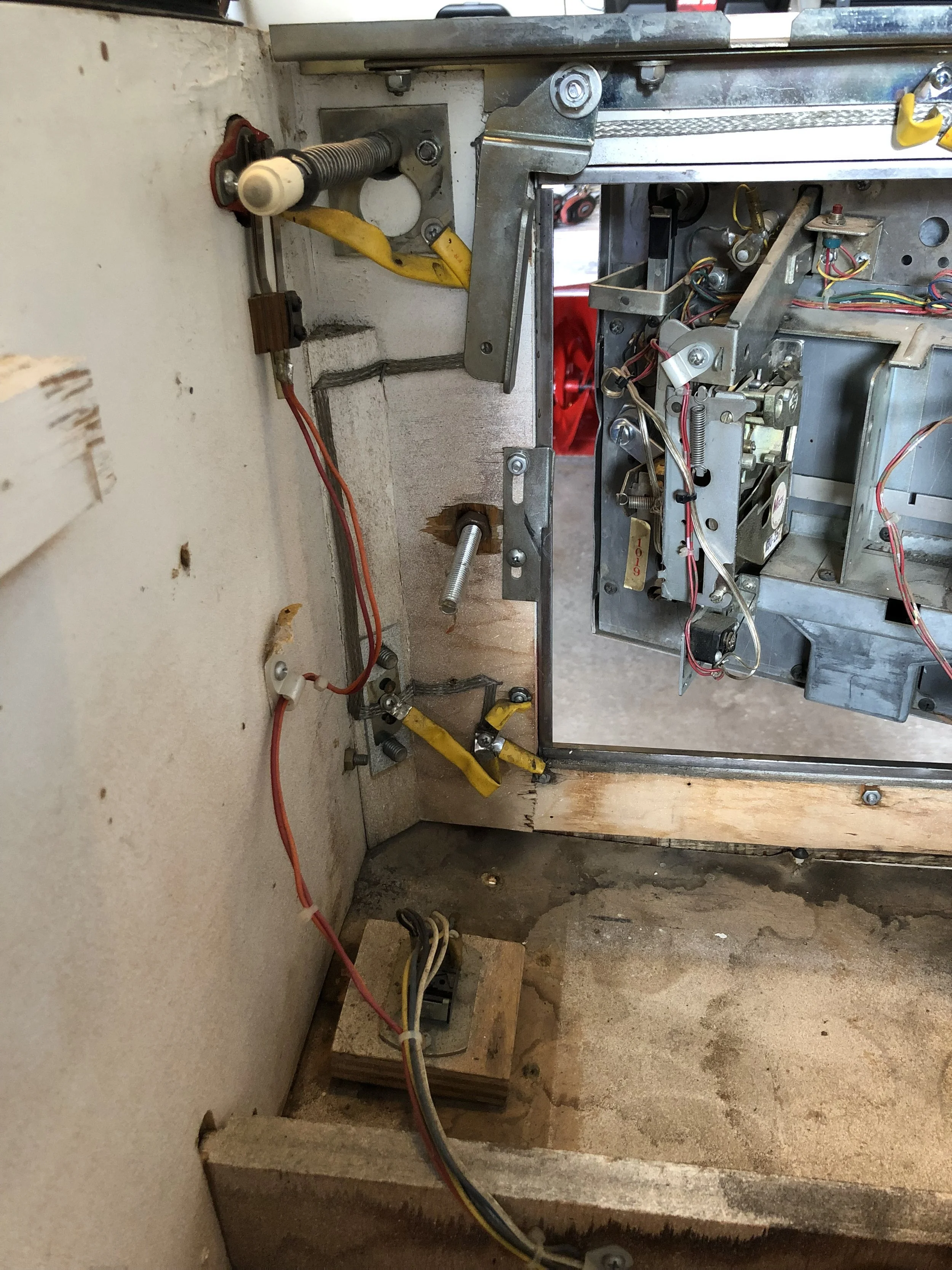 I was pleasantly surprised to find a complete board set, albeit a Stern SDB. There was moderate playfield wear, a live spider’s nest on the SDB, dormant mud dauber nests in the backbox and the lower cab, and don’t get me started on the condition of the cab.