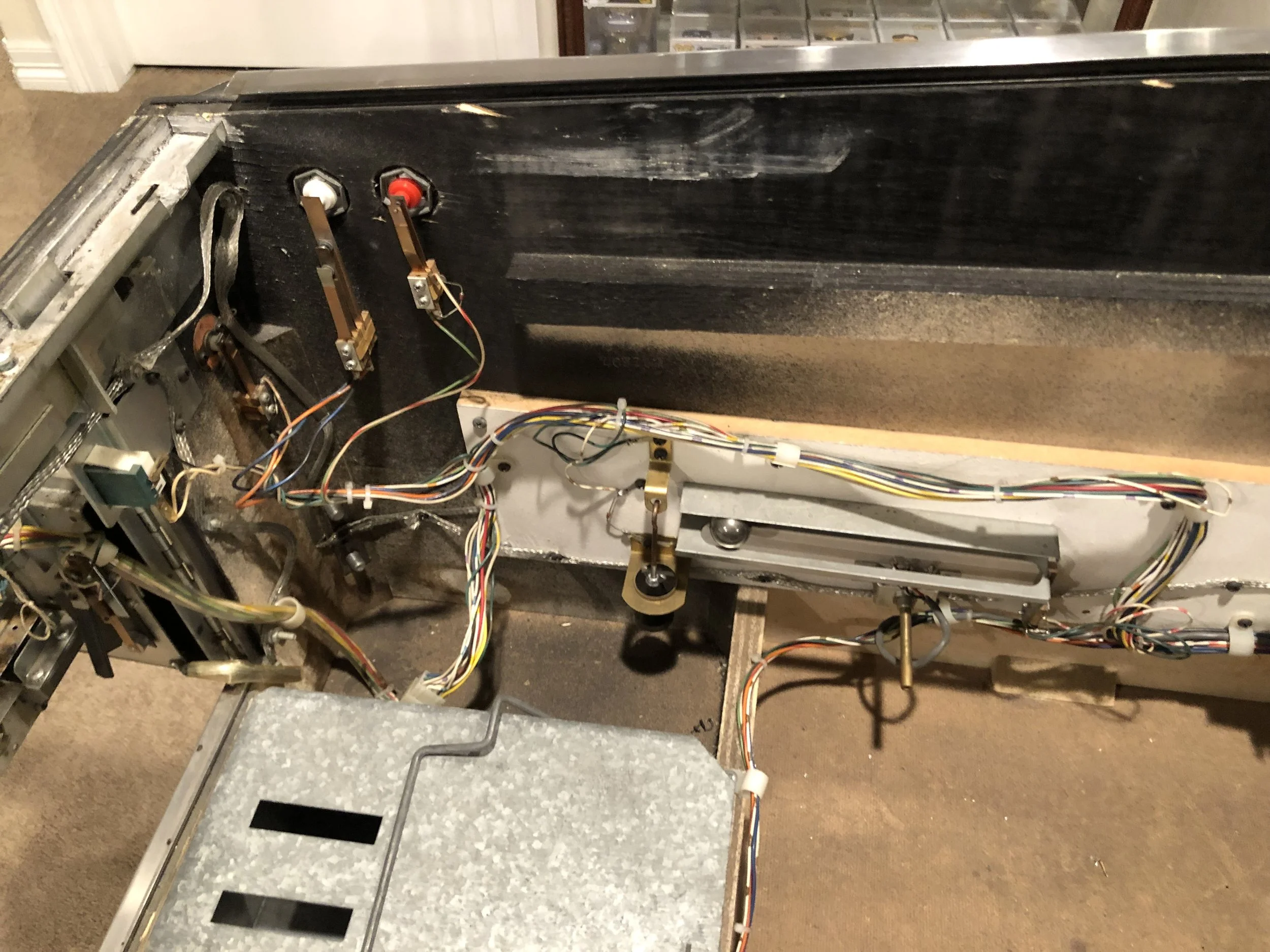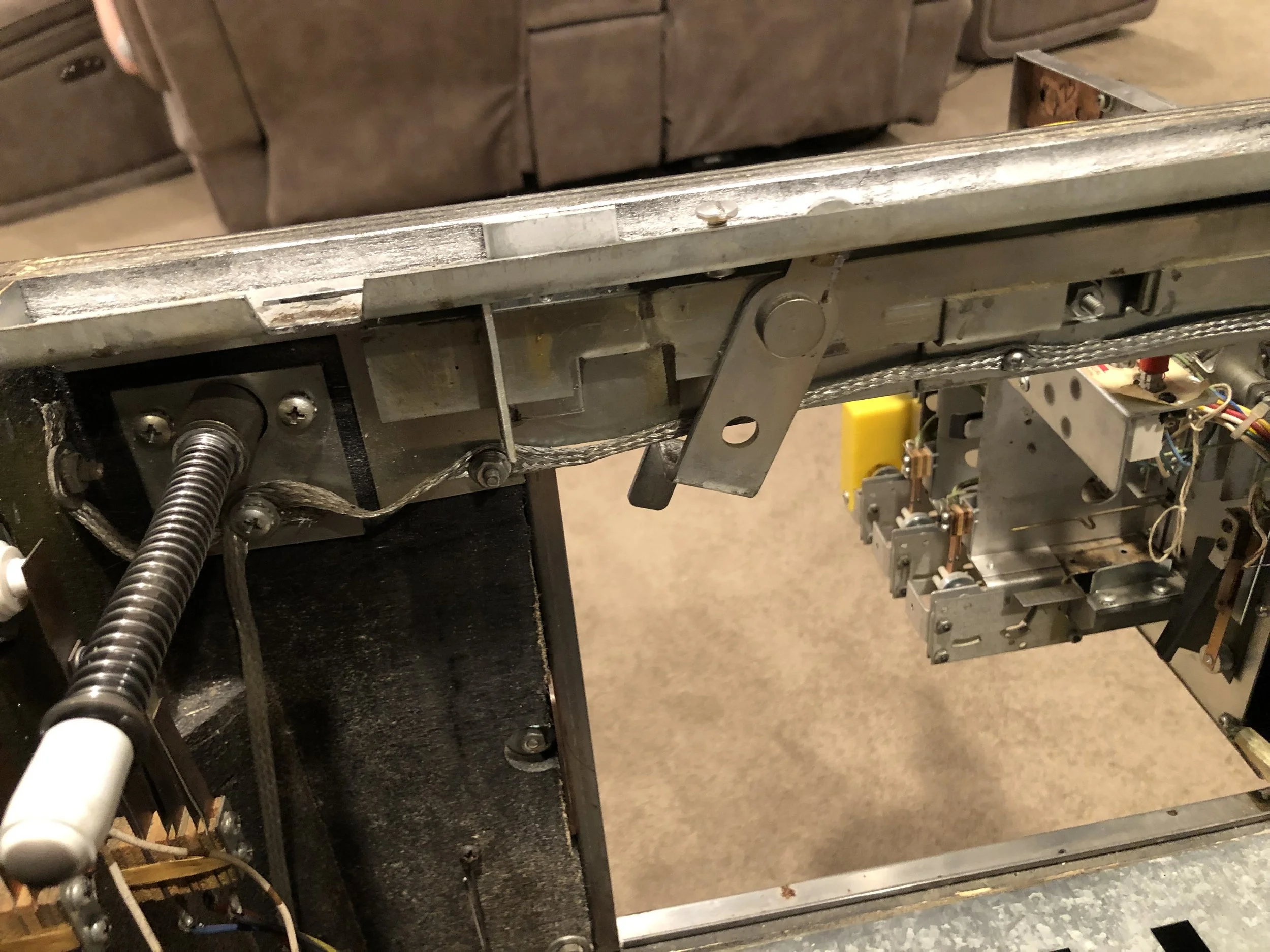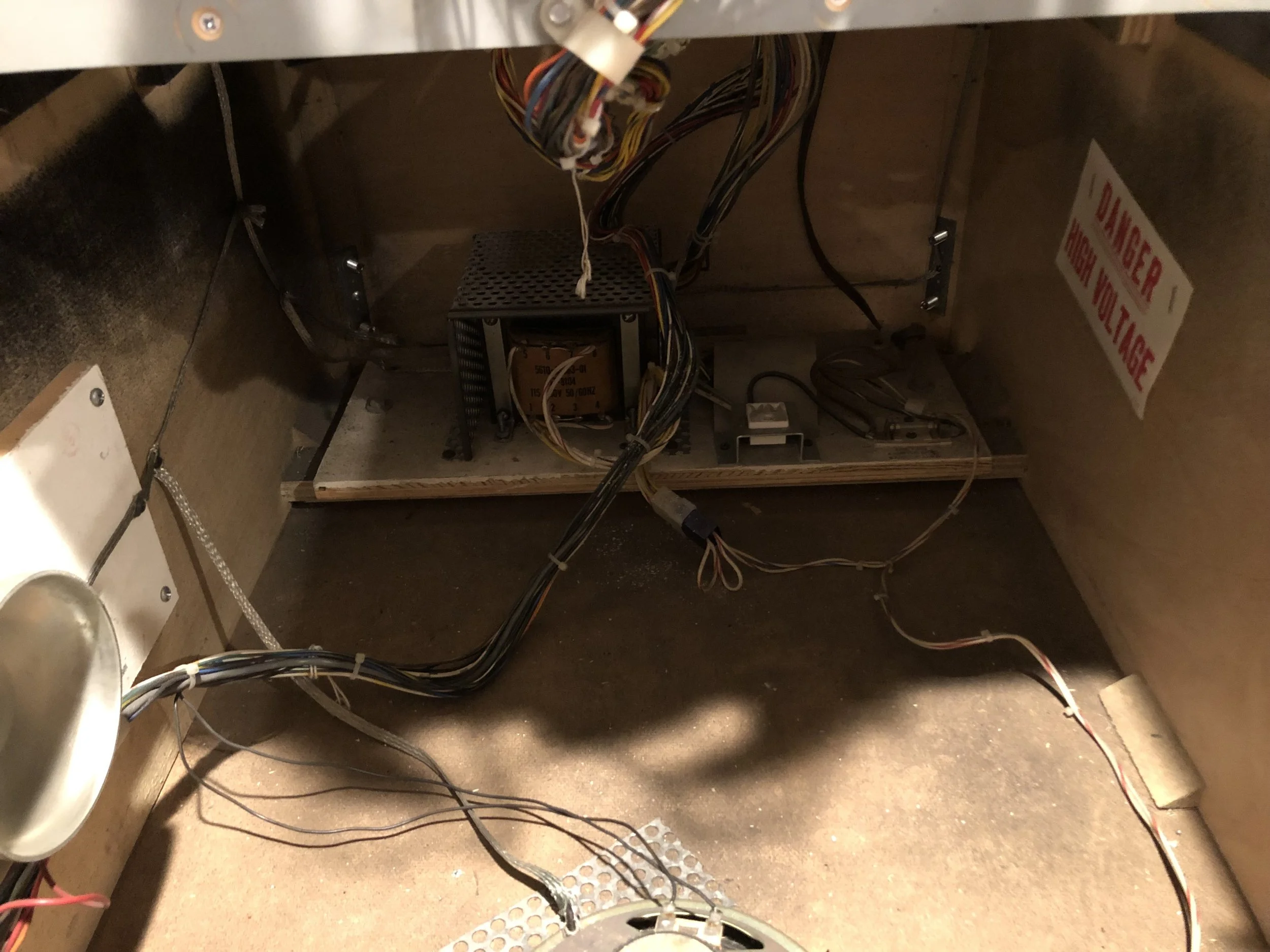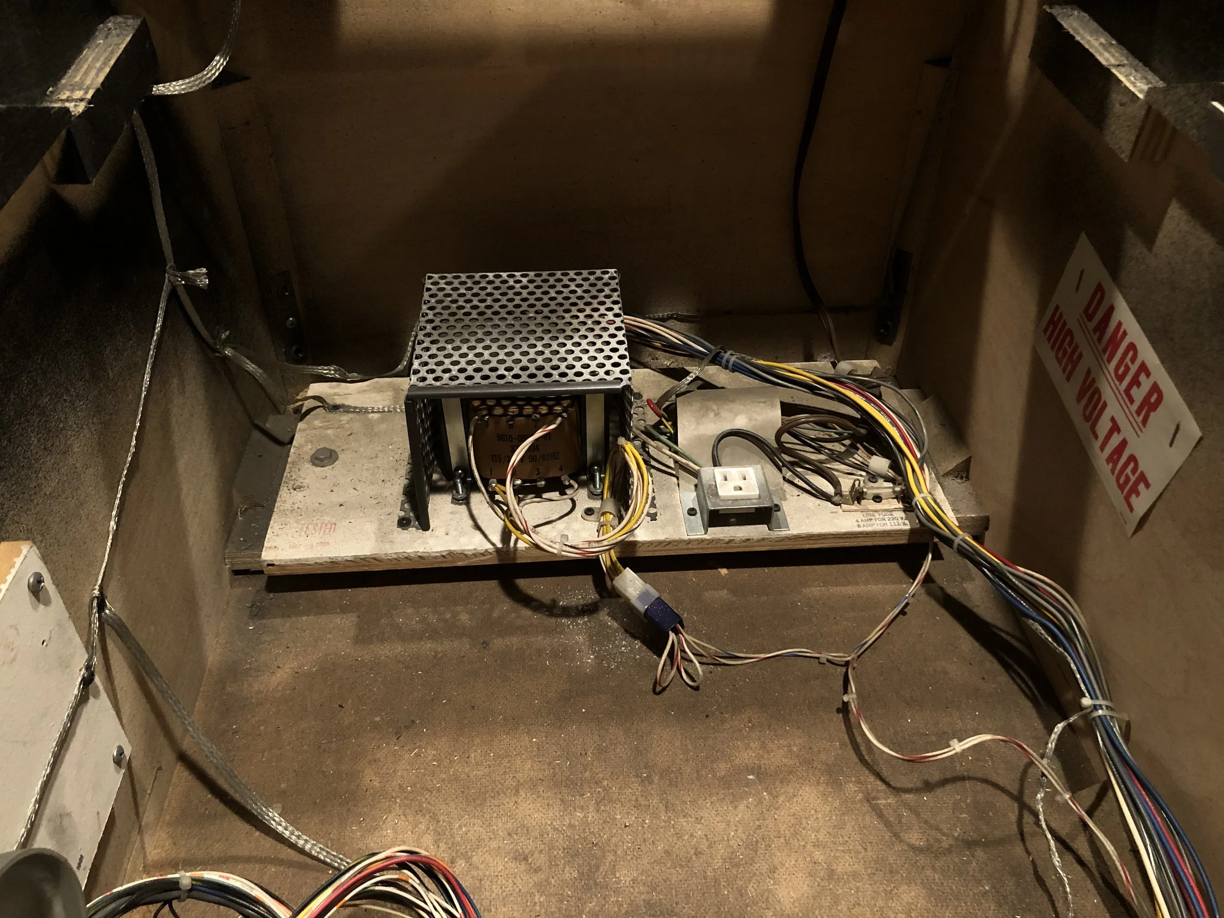 If you lift the playfield with the power on, the machine sometimes resets. I likely figured this one out already during tear-down....found a loose grounding wire near the transformer. All new grounding braid will be going in the cabinet after the re-paint.