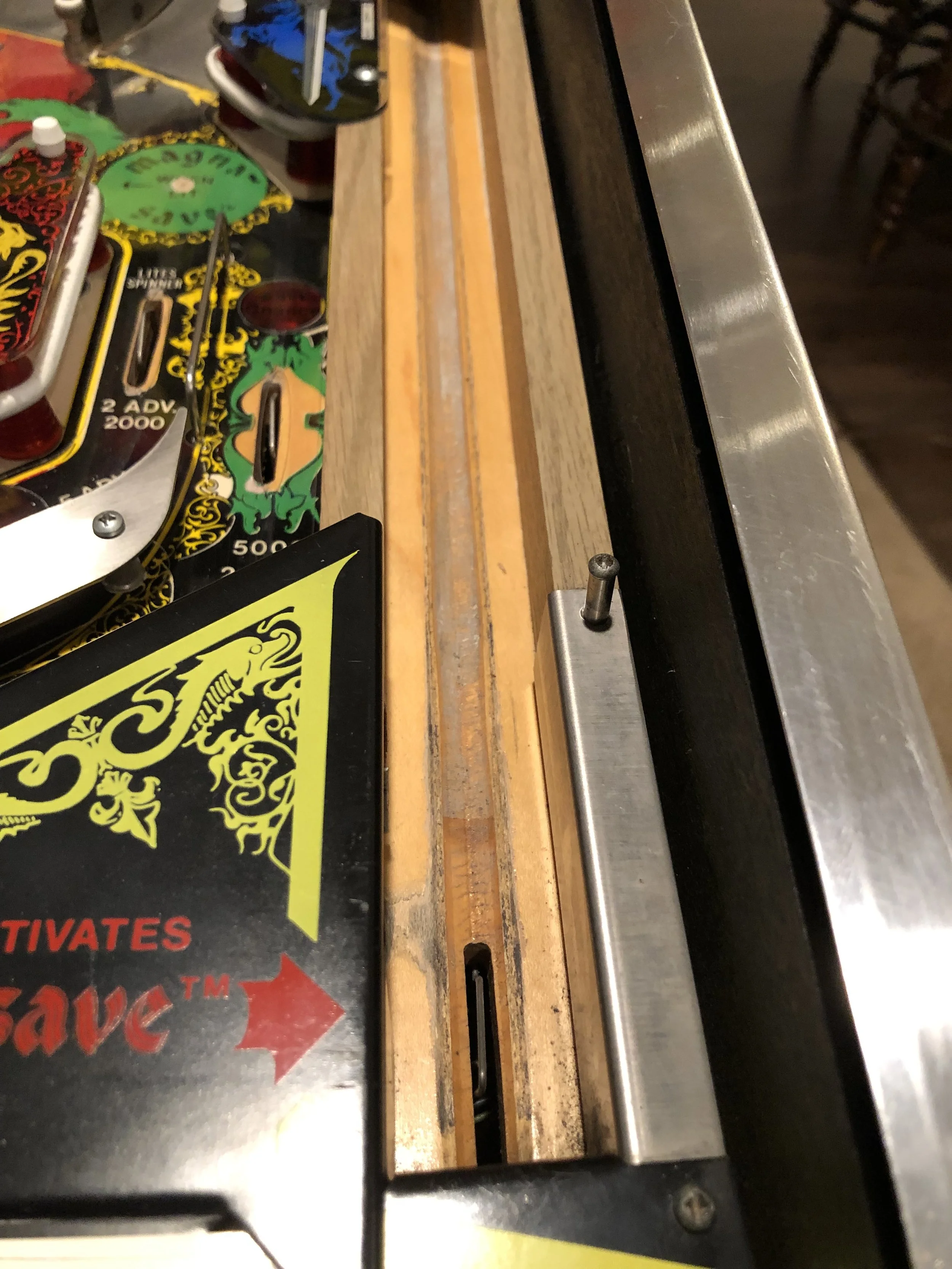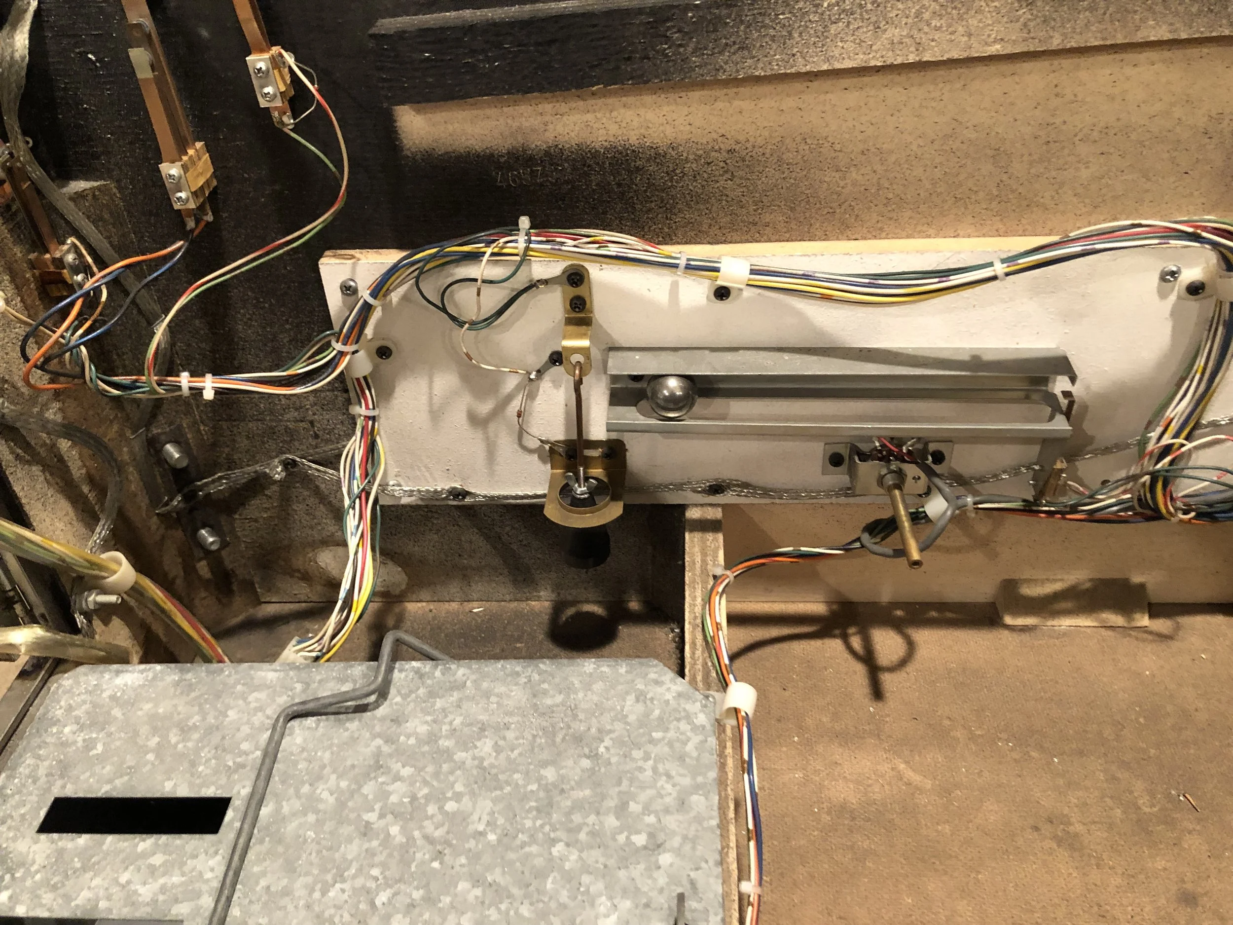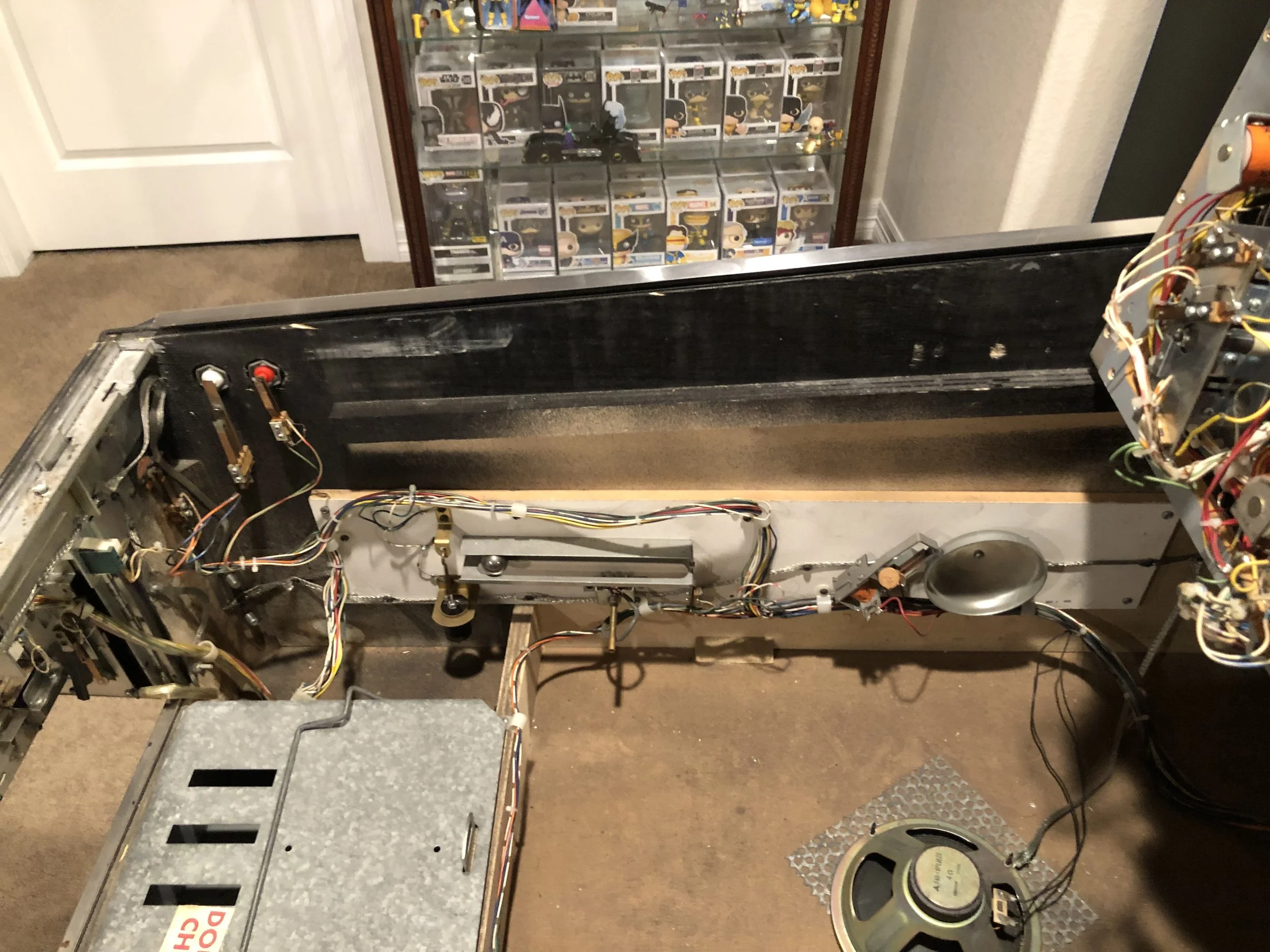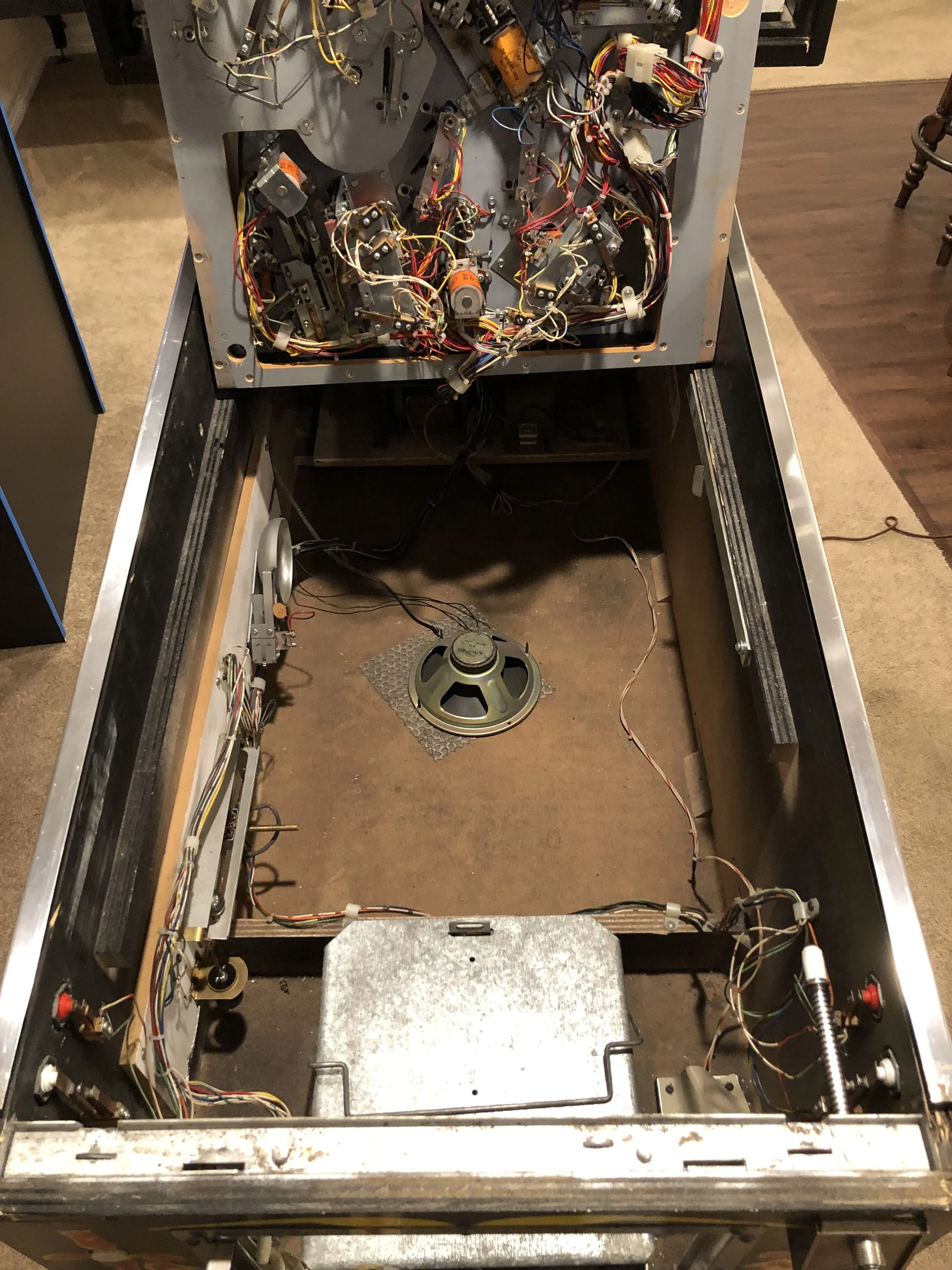 If you lift the playfield with the power on, the machine sometimes resets. I likely figured this one out already during tear-down....found a loose grounding wire near the transformer. All new grounding braid will be going in the cabinet after the re-paint.