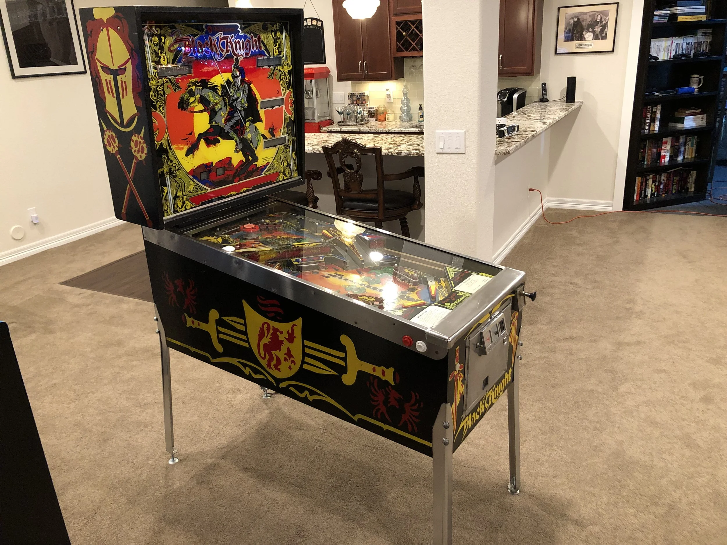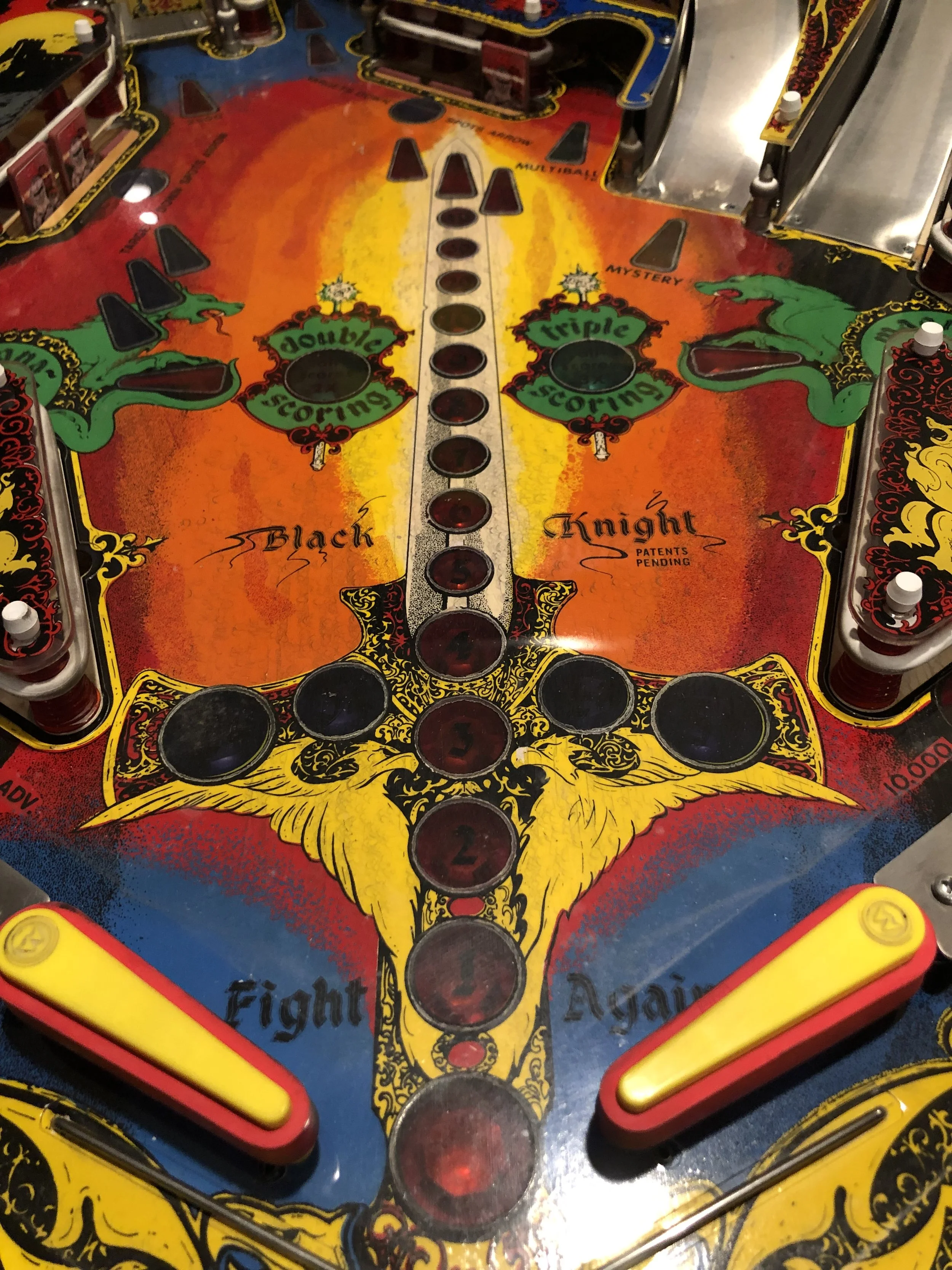 I bought a nice player Black Knight from a guy on Facebook at a reasonable price. Upon receipt, it actually played well with only a few switches needing adjustment along with flipper rebuilds. I performed that maintenance along with putting in a playfield protector to overcome the badly cupped inserts and I enjoyed the machine for a couple of years before deciding to restore it.