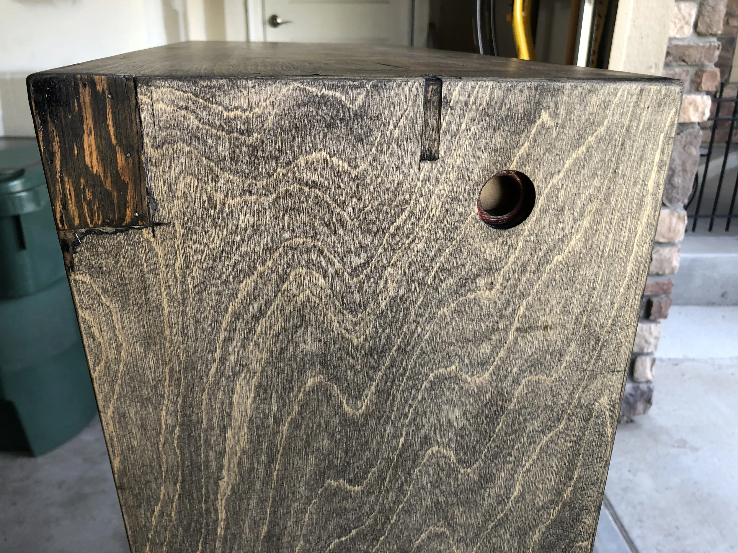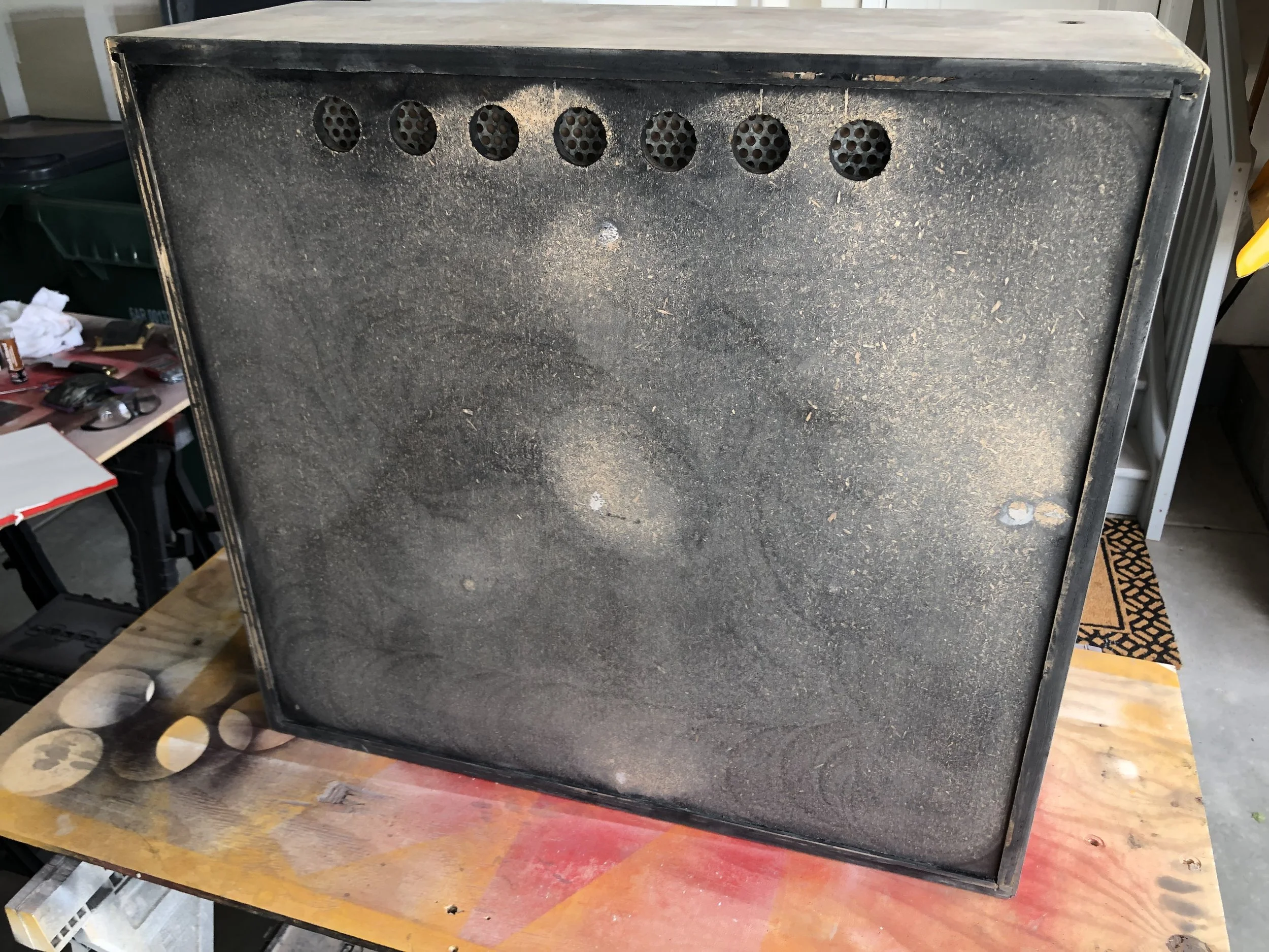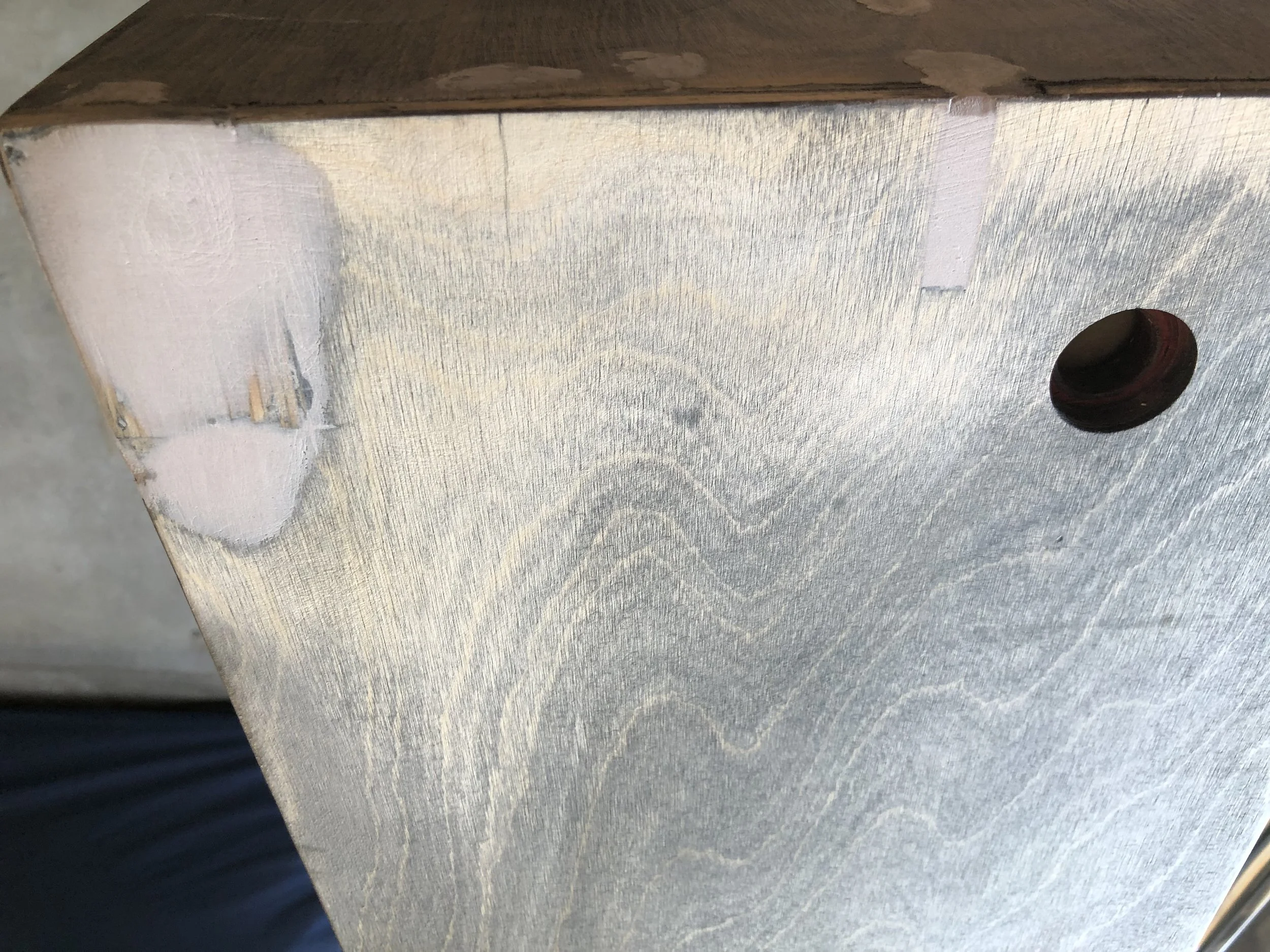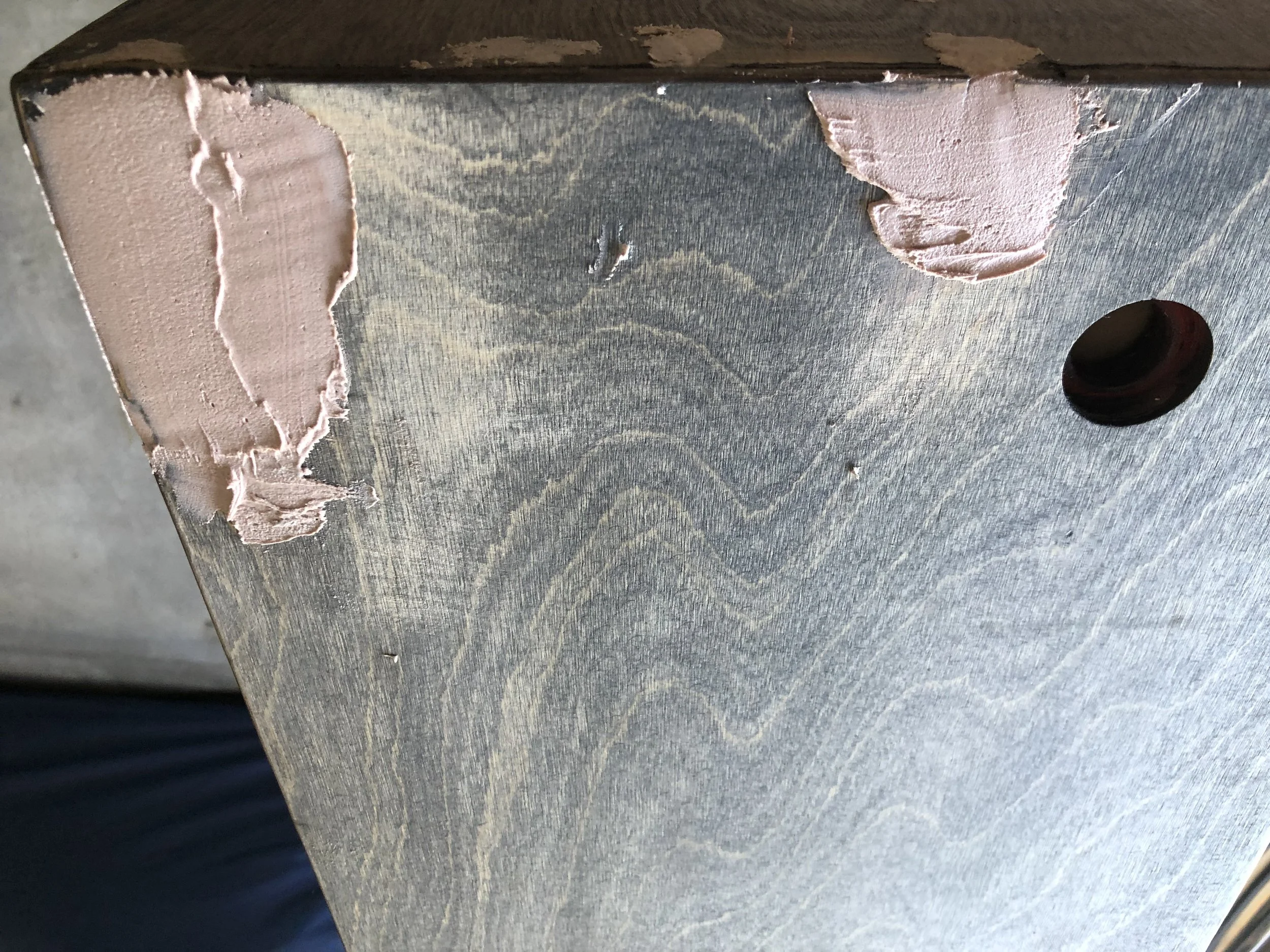 Despite being structurally sound, the cabinet needed a lot of work fixing the deep gouges and scratches, particularly the back. Bondo to the rescue.