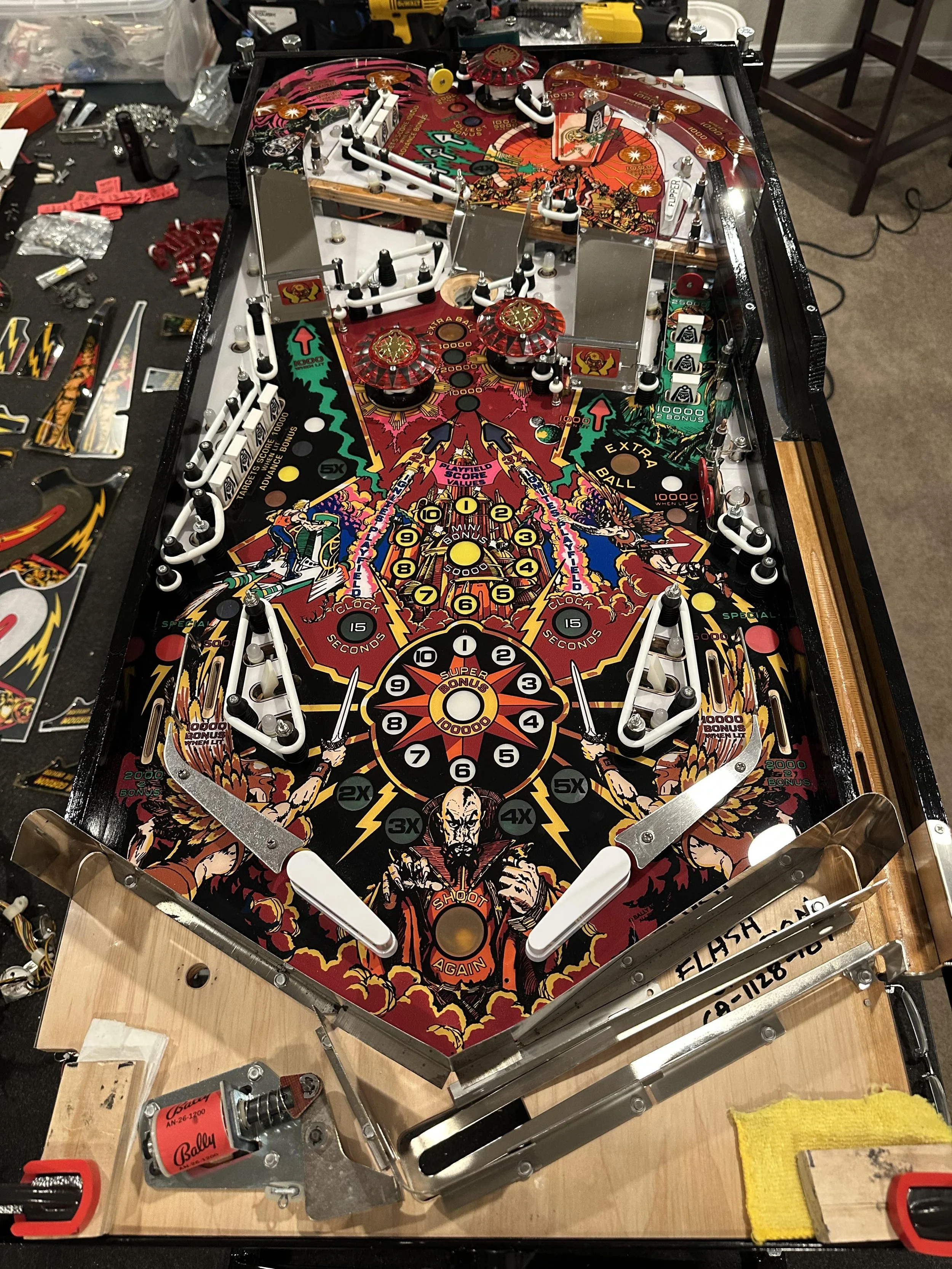 This Flash Gordon had some pretty good bones to start me off well and of all the restorations I’ve done to date, this one was probably the least problematic. And even though the original high voltage gas score displays were in pretty good shape for being 44+ years old, I replaced them with Xpin LED displays which take less power to run (5v vs 180v). It also allows me to remove the high voltage circuit from the pin, by removing a fuse, thereby making it much safer to work on and more power friendly.