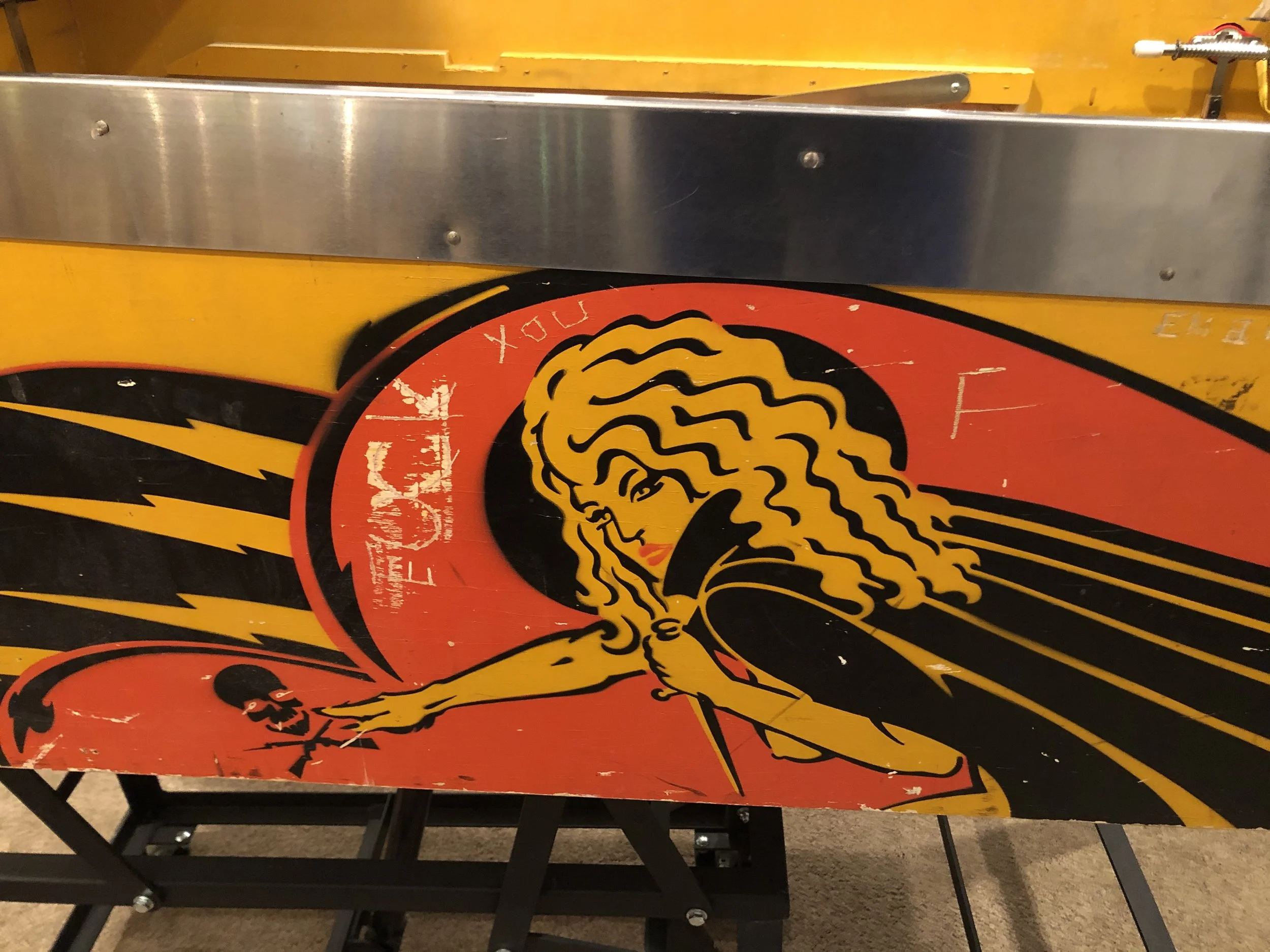 At this point in 2019, I had never done a playfield swap so for Phase 1 of the restoration, I opted to put on a hardtop and play it for a while before doing Phase 2 (the cabinet restoration). The original playfield was playable but most inserts were cupped so badly that it dramatically affected ball trajectory even at moderate speeds.