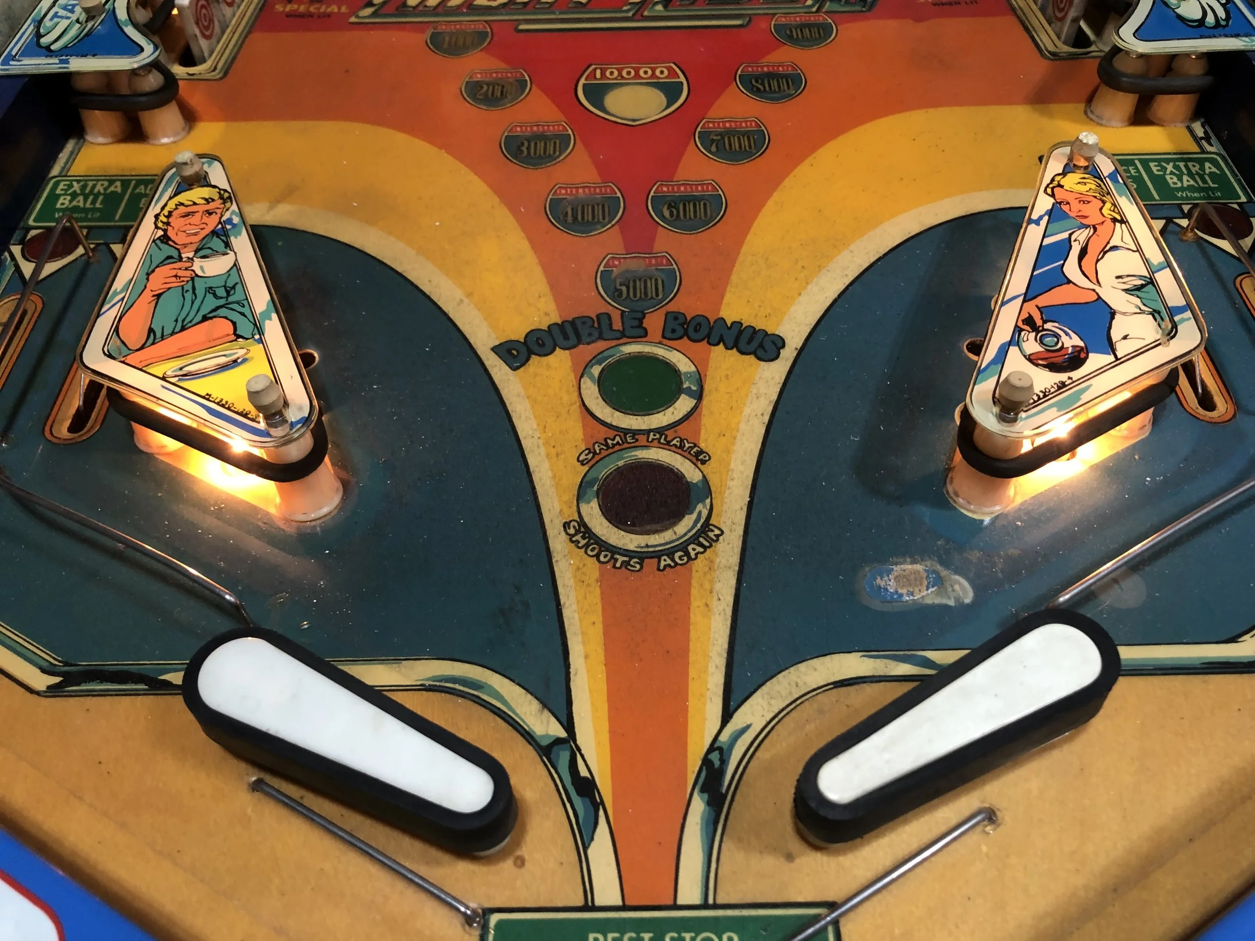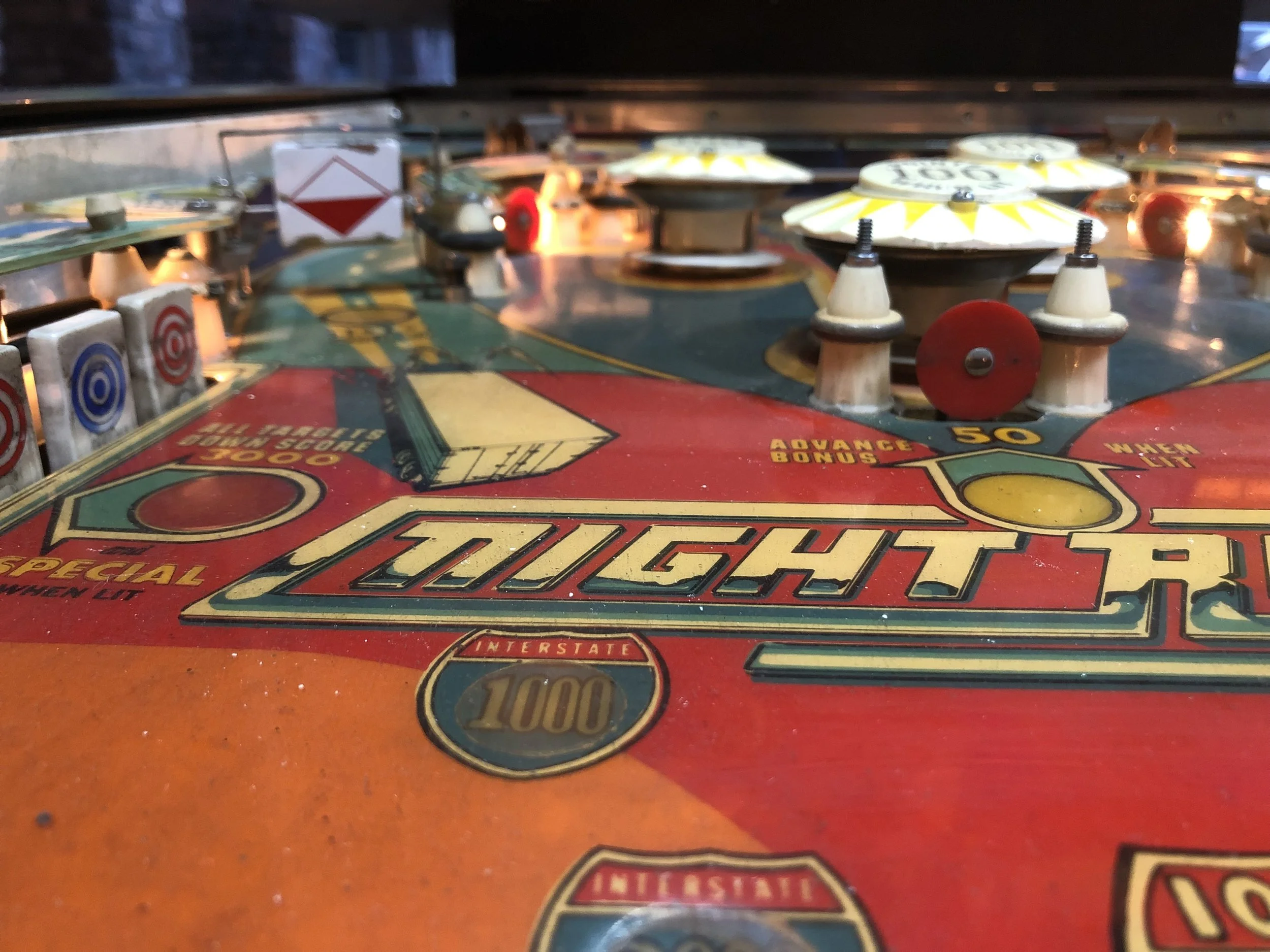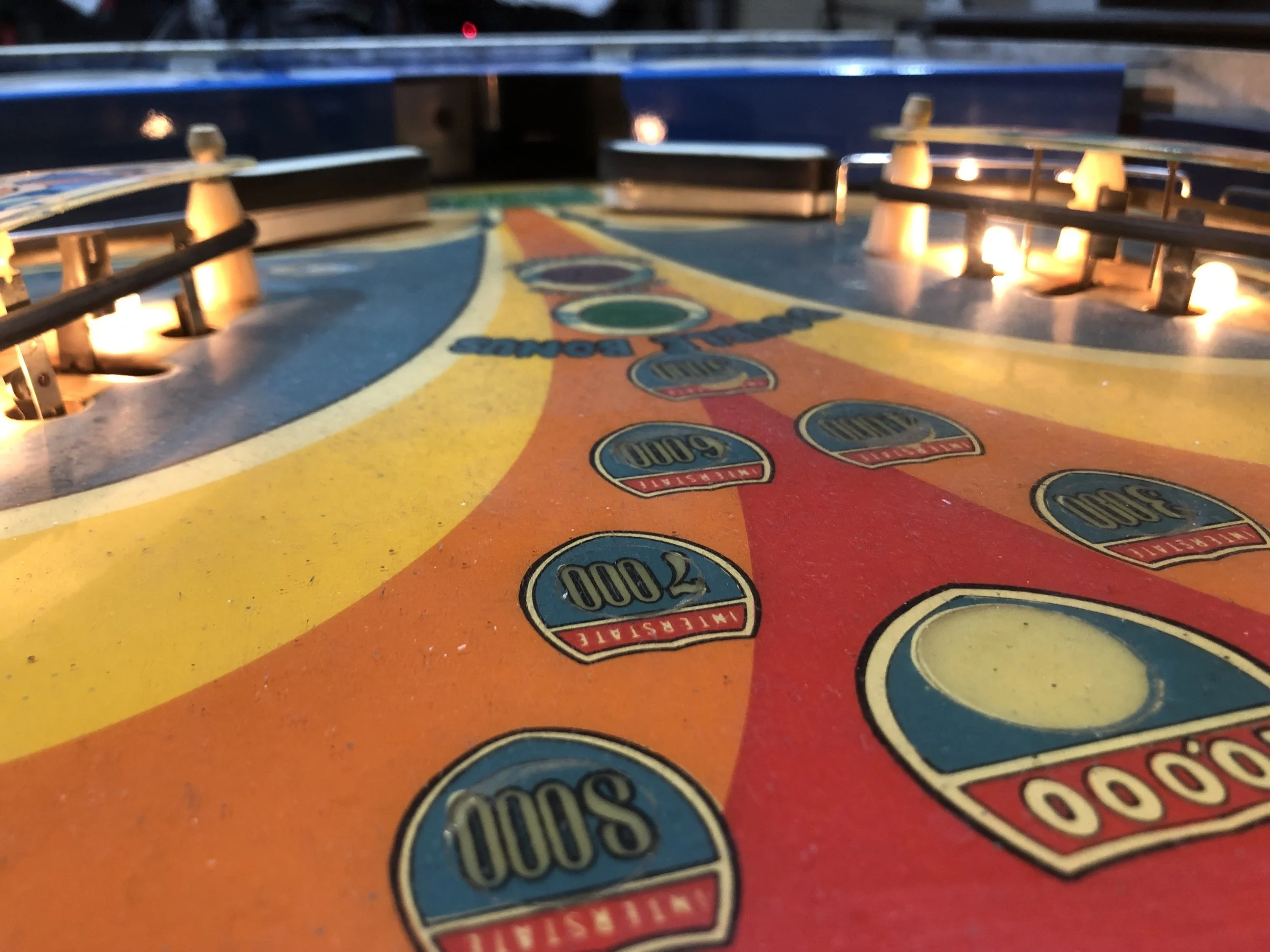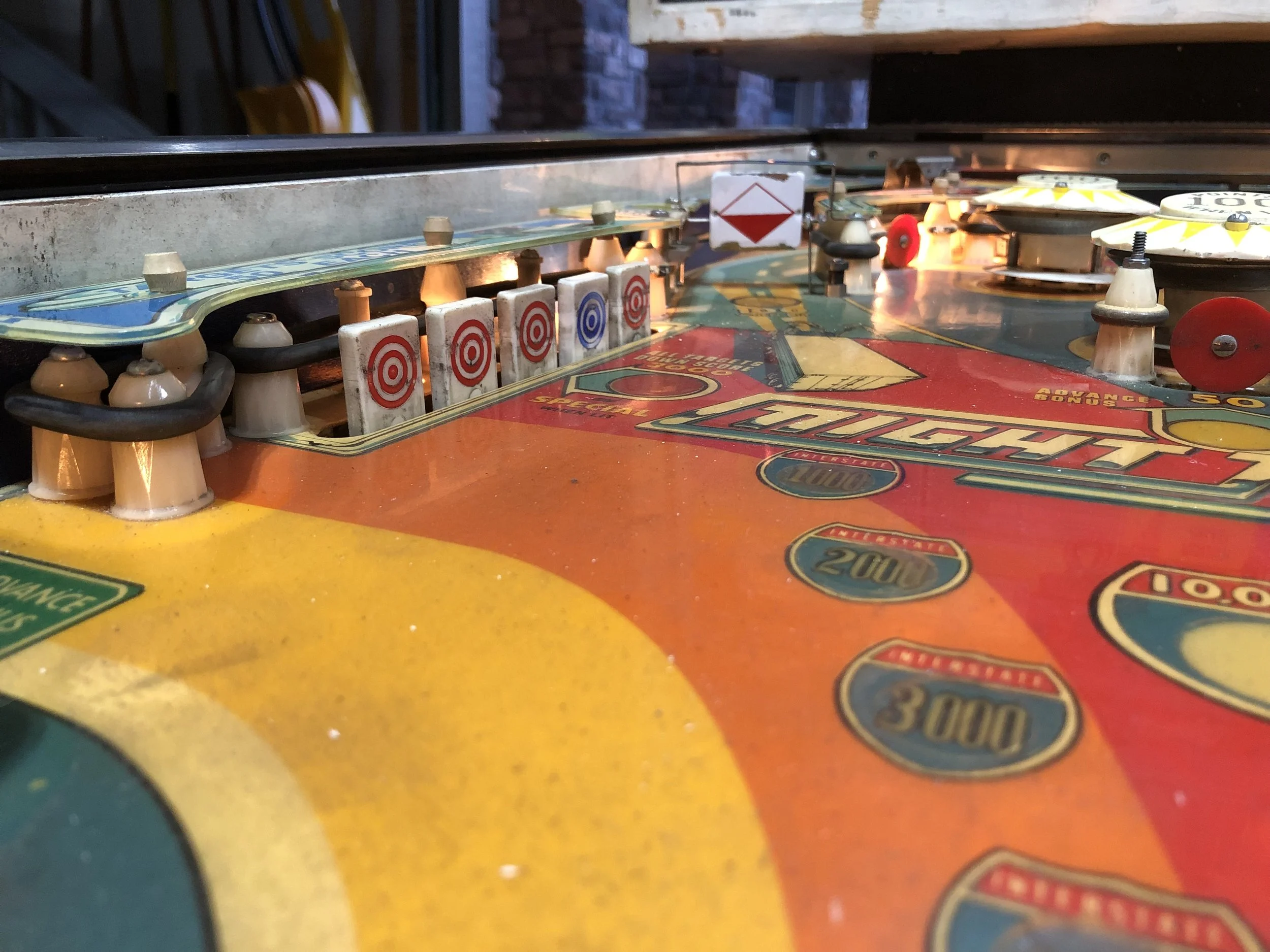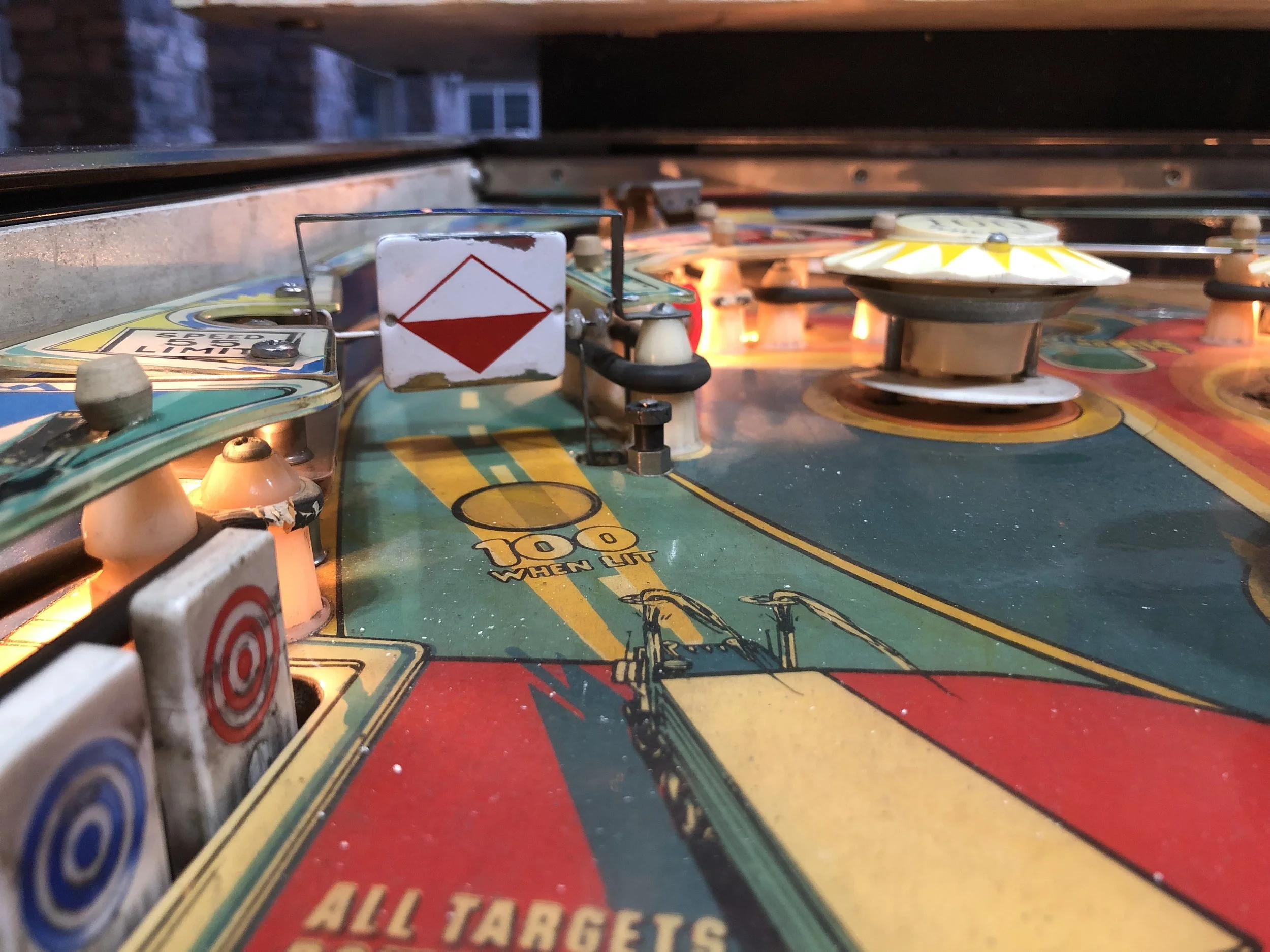 This was going to be interesting - while the backglass was original and in fantastic shape, most everything else needed serious attention. Burned coils, blown playfield, rusty brackets and legs, wiring hacks, and plastics that were either faded, cracked, or both. Cabinet was structurally sound but gouges, scratches, and corner damage needed repairs (along with a repaint). And tons and tons of dirt and grime. Everywhere.