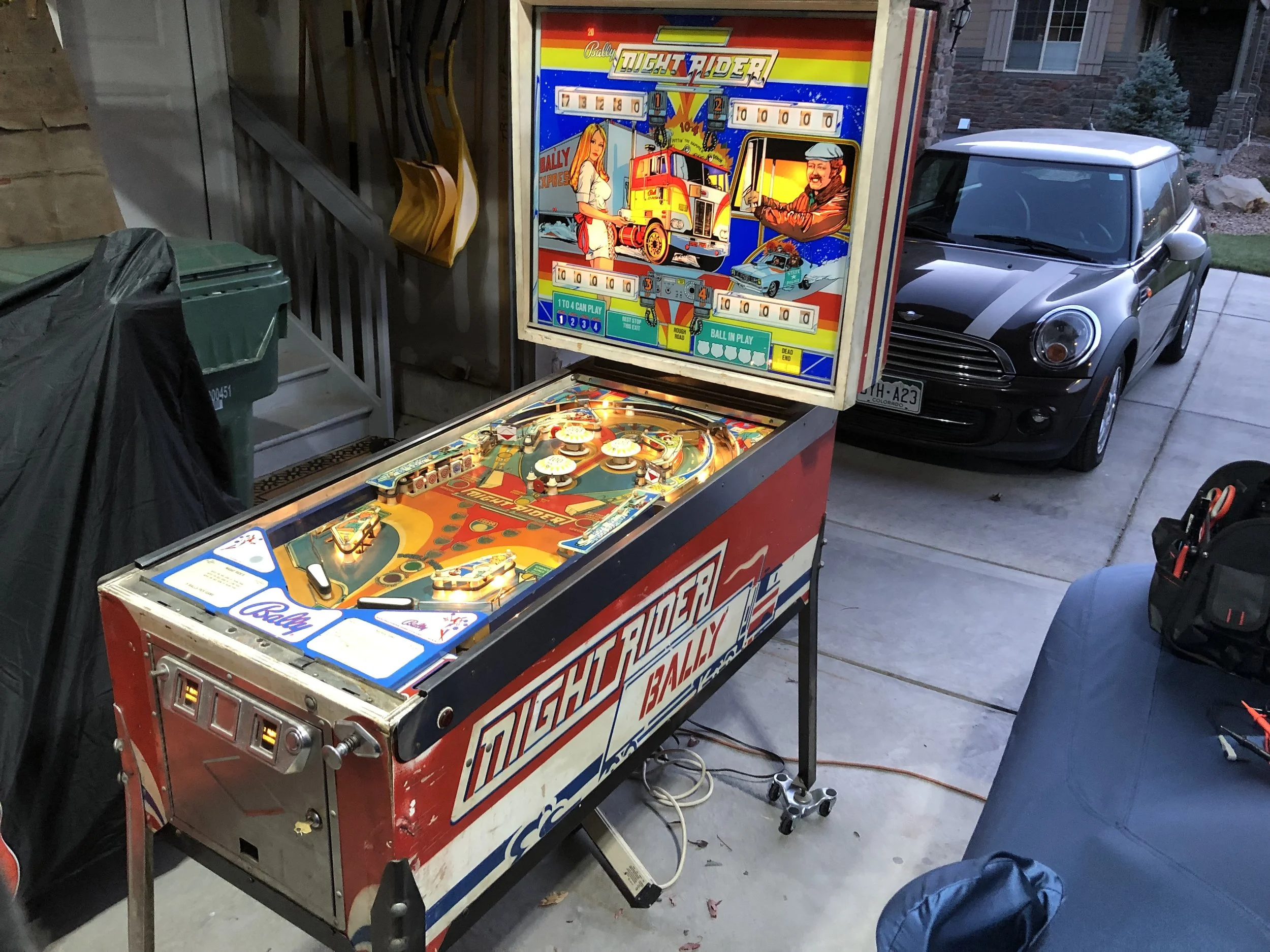 There were no keys to the backbox. At power-on, only a few GI lights came on. I had to drill through the backbox lock in the guy’s basement so I could fully dismantle the pin for transport. First stop - get it in my garage and fully assess what I’ve gotten myself into.